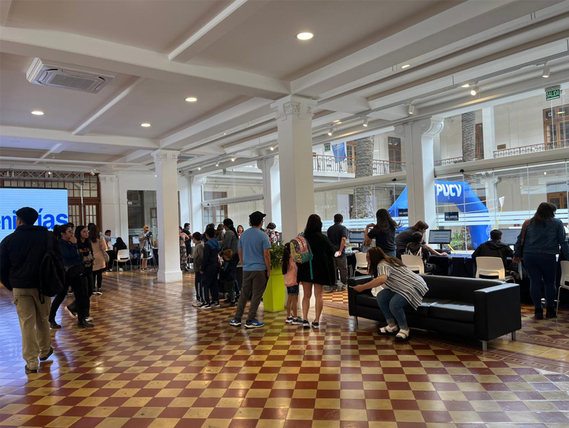 Si bien la inscripción se realiza completamente de manera online, las y los nuevos estudiantes quisieron hacerse presentes en la Expo Vida Universitaria que se desarrolla en la PUCV, no tan solo para ser orientados por los monitores en la realización del proceso, sino también para conocer los diversos beneficios y actividades que ofrece la Universidad, como son el deporte, la cultura, el programa de idiomas, el intercambio, entre muchos otros.