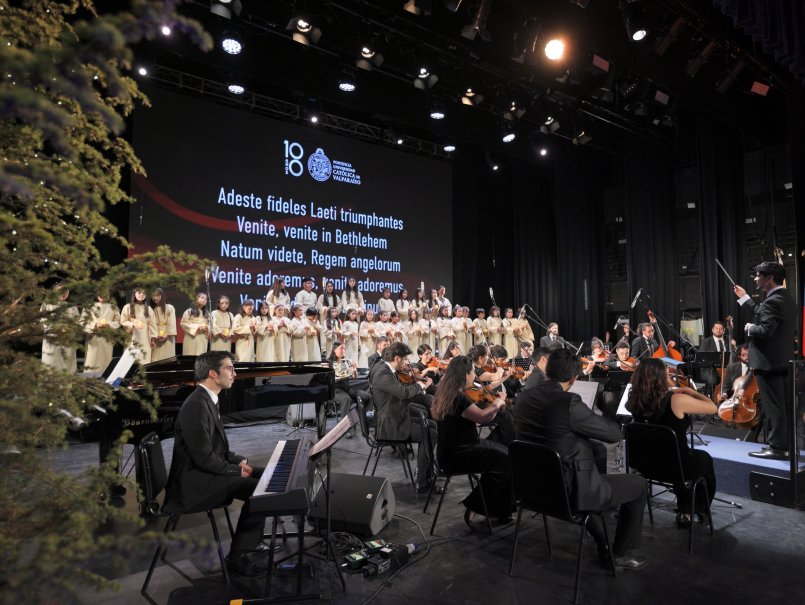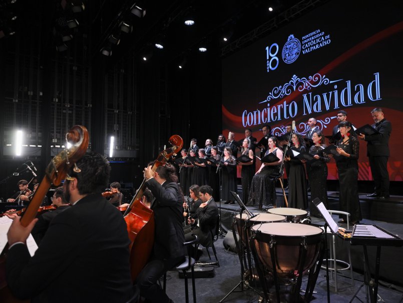 Con una vibrante puesta en escena y un repertorio clásico de la festividad, se llevó a cabo el tradicional Concierto de Navidad PUCV en el Teatro Municipal de Viña del Mar. A cargo de la Orquesta y Coro de Cámara de la Universidad, y bajo la dirección de Jesús Rodríguez, la velada emocionó al público asistente que tuvo la posibilidad de vivir un espectáculo de primer nivel, interactivo y que contó con la participación especial de dos coros estudiantiles.