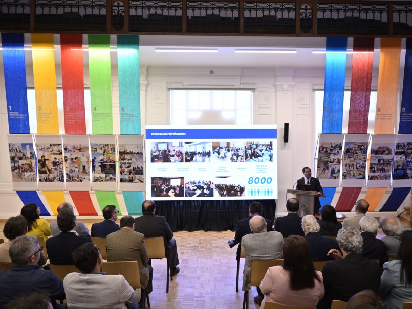Por su parte, el vicerrector de Desarrollo, Jorge Mendoza, quien estuvo a cargo de liderar este proceso, destacó que el plan comenzó a esbozarse en septiembre de 2022, luego se efectuó un claustro pleno extraordinario para cambiar la visión de la Universidad y más de 8 mil personas participaron en la elaboración de este plan, lo que es una muestra de la importancia que tiene la planificación para su comunidad.
