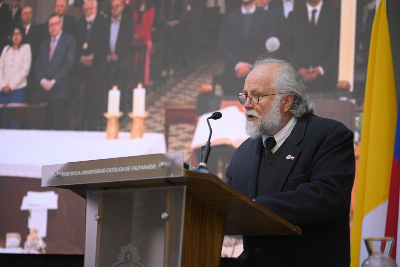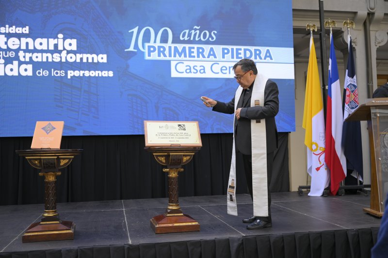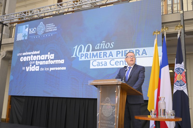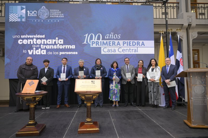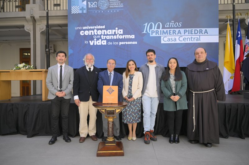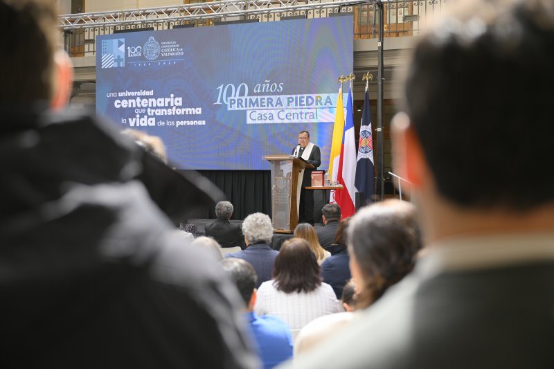 La comunidad universitaria se dio cita en la ceremonia con la que la Pontificia Universidad Católica de Valparaíso conmemoró los 100 años de la colocación de la primera piedra en Casa Central.