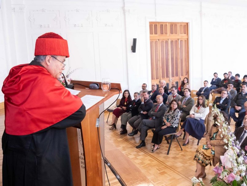 La ceremonia fue encabezada por el director de la Escuela de Derecho, Eduardo Aldunate, quien dedicó palabras especialmente dirigidas a los estudiantes de primer año. En su discurso, destacó el valor de la trayectoria institucional recordando que “arriban también a una institución con 131 años de existencia (…) lo que da vida a este número es una idea, un espíritu, un proyecto que anima nuestro quehacer, que debe ser permanentemente alimentado y actualizado, y sin el cual, tal como un cuerpo abandonado por su alma, perdemos nuestra vida y nos transformamos en un objeto inútil sujeto a la corrupción del tiempo”.
