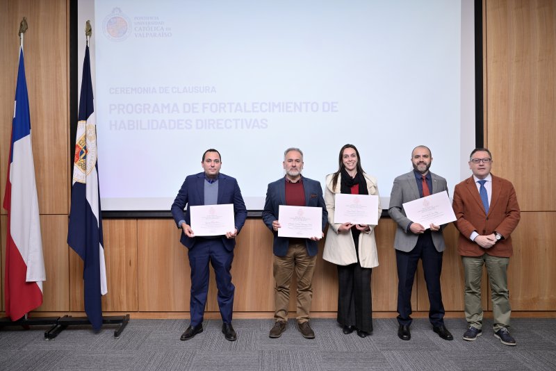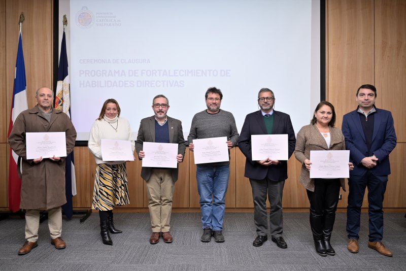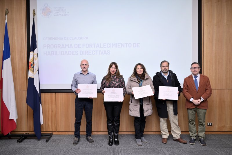 El martes 4 de mayo, en el Salón V Centenario de la Casa Central de la Pontificia Universidad Católica de Valparaíso, se llevó a cabo la ceremonia de clausura del Programa de Fortalecimiento de Habilidades Directivas.