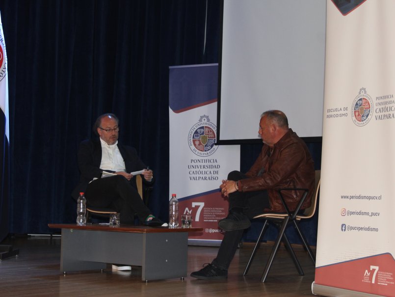 Finalmente, el director de la Escuela de Periodismo PUCV, Claudio Elórtegui, se refirió al hecho de estar celebrando el vigésimo octavo aniversario de esta Unidad Académicas: “Vamos a empezar a generar todos los esfuerzos, seguir por la senda que la Escuela ha realizado, de conversar y poder traer a nuestras aulas a destacadas figuras de la comunicación -que pueden estar en la política, en el ámbito cultural, artístico, medioambiental, económico-. Eso habla también de cómo estas figuras pueden dialogar y pueden conocerse en sus distintas dimensiones humanas con las y los estudiantes”.