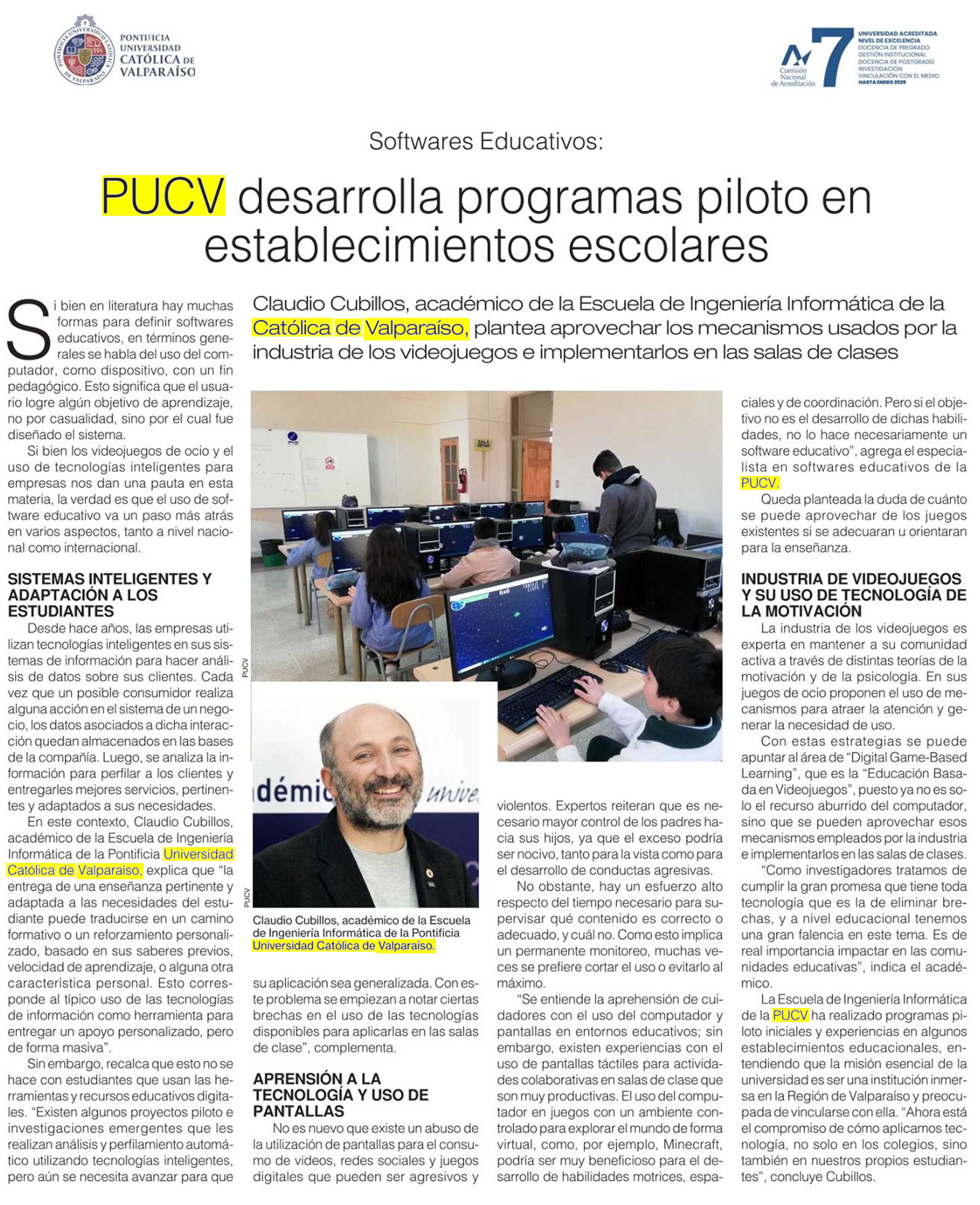 “Como investigadores tratamos de cumplir la gran promesa que tiene toda tecnología que es la de eliminar brechas, y a nivel educacional tenemos una gran falencia en este tema. Es de real importancia impactar en las comunidades educativas”, indica el académico de la Escuela de Informática, Claudio Cubillos, que ha realizado programas piloto iniciales y experiencias en algunos establecimientos educacionales, acorde a la misión esencial de la universidad como institución inmersa y vinculada con la Región de Valparaíso.