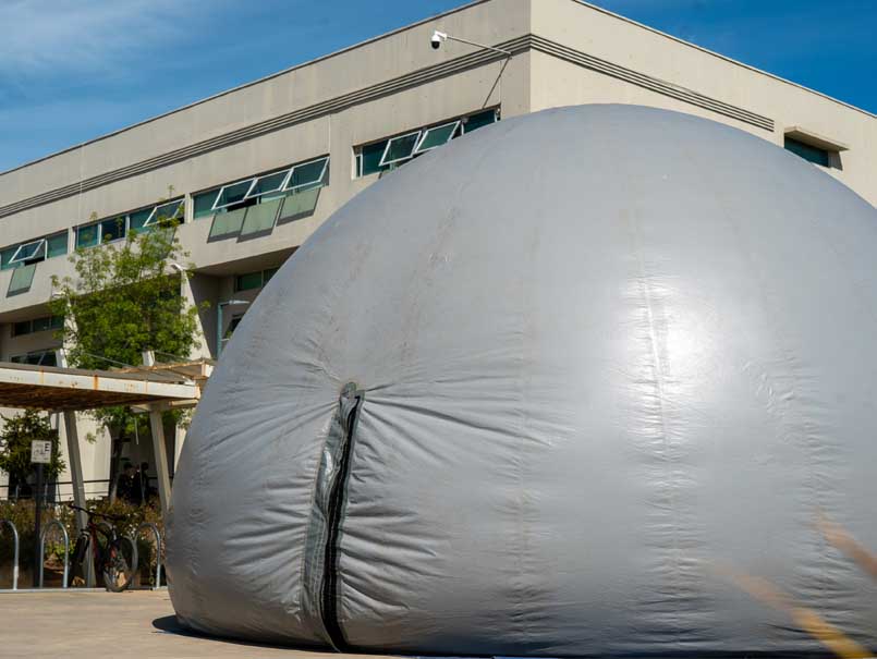 El planetario móvil contempla un domo inflable de ocho metros de diámetro que puede recibir en su interior entre 25 a 30 personas sentadas cómodamente y cuenta con un dispositivo de alta resolución. “Las películas y material educativo, que están diseñados especialmente para el planetario, se proyectan en la superficie interna del domo con el objetivo de que los espectadores puedan tener una panorámica en 360 grados”, señaló el académico.