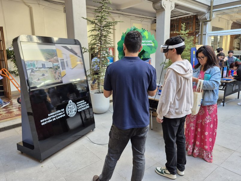 Una de las actividades más concurridas por los estudiantes, es la experiencia de realidad virtual, que permitió a las y los asistentes recorrer el nuevo Aulario B del Campus Curauma. Este modelado 3D mostró con detalles los espacios de esta nueva infraestructura, incluyendo colores, diseño y mobiliario.