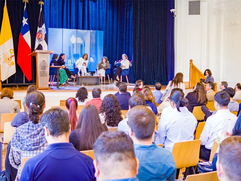 En esta segunda versión de la actividad, se realizó un panel de conversación moderado por la periodista y escritora Paula Escobar, en el que participaron la científica María Cecilia Hidalgo –bioquímica, primera doctora en Ciencias de la Universidad de Chile y ganadora del Premio Nacional de Ciencias Naturales en 2006– junto a las investigadoras de la PUCV Adela Bork, de la Escuela de Trabajo Social; Claudia Altamirano, de la Escuela de Ingeniería Bioquímica; y Paula Grez, del Instituto de Química.