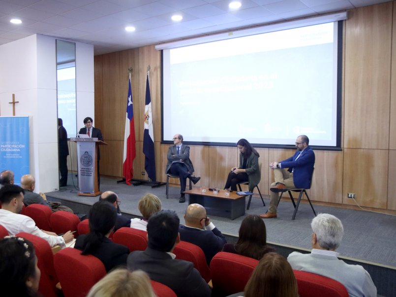 Los secretarios ejecutivos Carlos Rilling e Ignacio Irarrázaval, junto a Valentina Rosas, coordinadora general, reflexionaron junto a académicos de la Universidad de Valparaíso y de la Universidad de Playa Ancha sobre la importancia de una participación incidente de la ciudadanía y el interés que la ciudadanía organizada e individual ante la invitación realizada por la Secretaría de Participación en el marco del Proceso Constitucional, que se reflejó en los resultados expuestos en la cita.