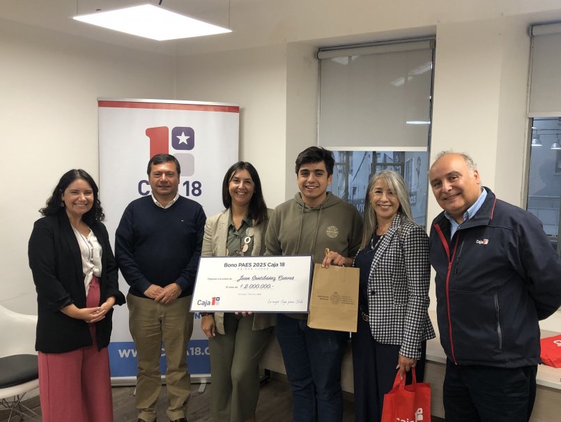 Por tercer año consecutivo, un hijo de profesor de la PUCV se adjudicó a nivel nacional los Bonos Mejores Puntajes PAES que entrega la Caja 18. En 2023, obtuvimos el tercer lugar; al año siguiente el segundo puesto y este 2025 el primero correspondiente a un bono de 2 millones de pesos. Este año, el reconocimiento fue otorgado a Juan Santibáñez, hijo del académico de la Escuela de Pedagogía, Edison Santibáñez.