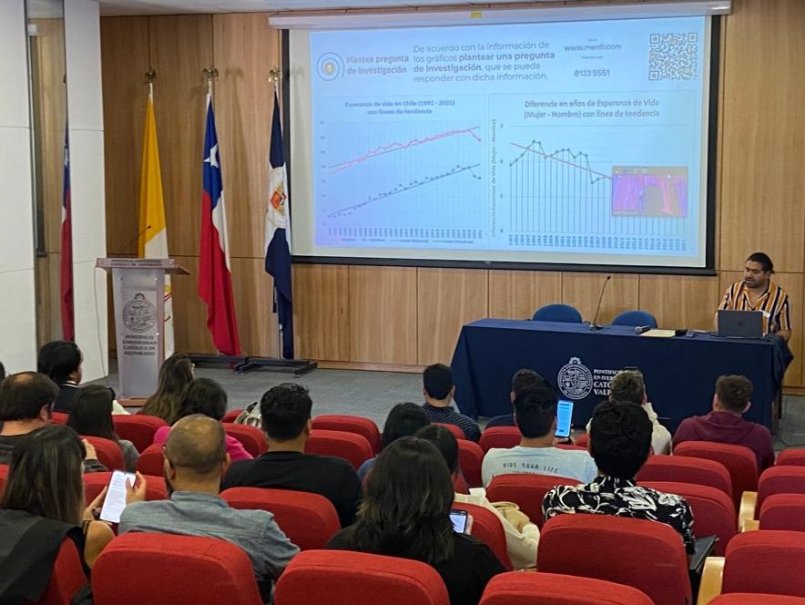 En el Auditorio Quinto Centenario de Casa Central se realizó el segundo Workshop de Educación Estadística para Profesores con una convocatoria especial de 300 docentes chilenos y extranjeros que de manera híbrida y presencial compartieron modelos prácticos e interactivos para enseñar estadística en las salas de clases.