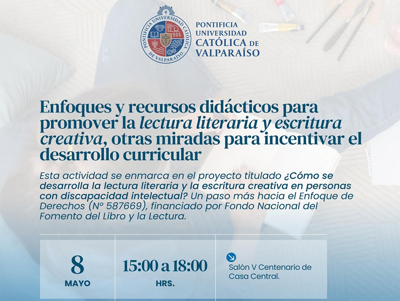El miércoles 8 de mayo, entre las 15 y las 18 horas en el Salón V Centenario de Casa Central (Avenida Brasil 2950, Valparaíso), la Escuela de Pedagogía realizará el seminario “Enfoques y recursos didácticos para promover la lectura literaria y escritura creativa. Otras miradas para incentivar el desarrollo curricular”.