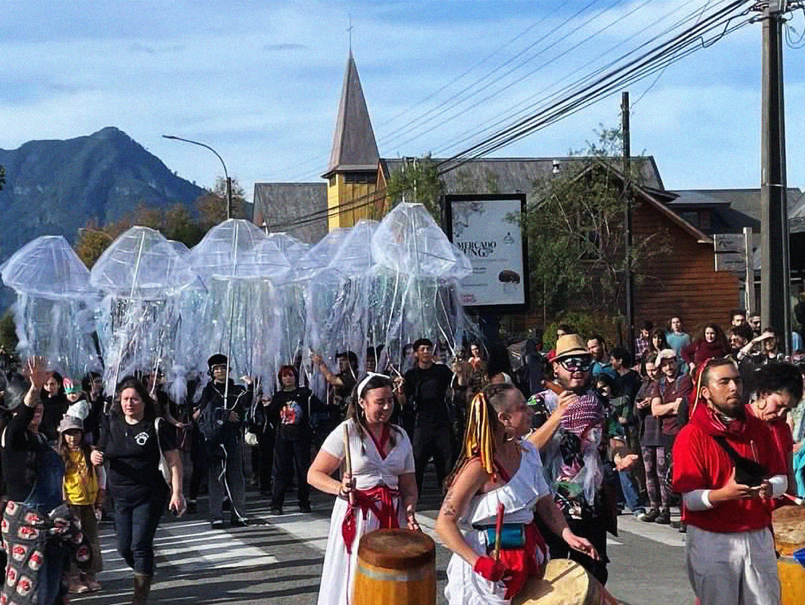 En Pucón se realizó la segunda versión del carnaval “Yo soy Flora, Fauna y Funga”, instancia que busca relacionar a la comunidad de la zona con la naturaleza que la rodea. Para esta ocasión, estudiantes del taller Topológico Multiescalar de la Escuela de Arquitectura y Diseño de la Pontificia Universidad Católica de Valparaíso tuvieron una importante labor al confeccionar unas “medusas” que se lucieron en el Pasacalles de la Farándula.