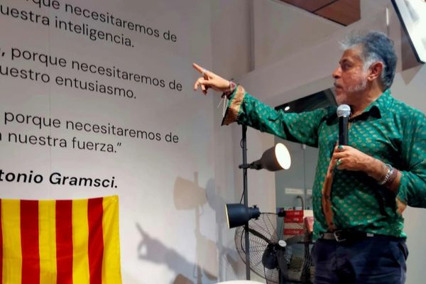 El encuentro, organizado por la poeta catalana Anna Bou Jorba, se desarrolló en el contexto de la celebración de Sant Jordi en Chile, en el marco del Día Internacional del Libro, y reunió a destacados escritores y artistas, entre ellos, el propio Ricardo Espinoza Lolas, Chinoy, Alberto Fuguet, Theodoro Elssaca, Manuel Sanfuentes y Marco Carvacho, integrante de la agrupación poética Pajarísticos, entre otros invitados.