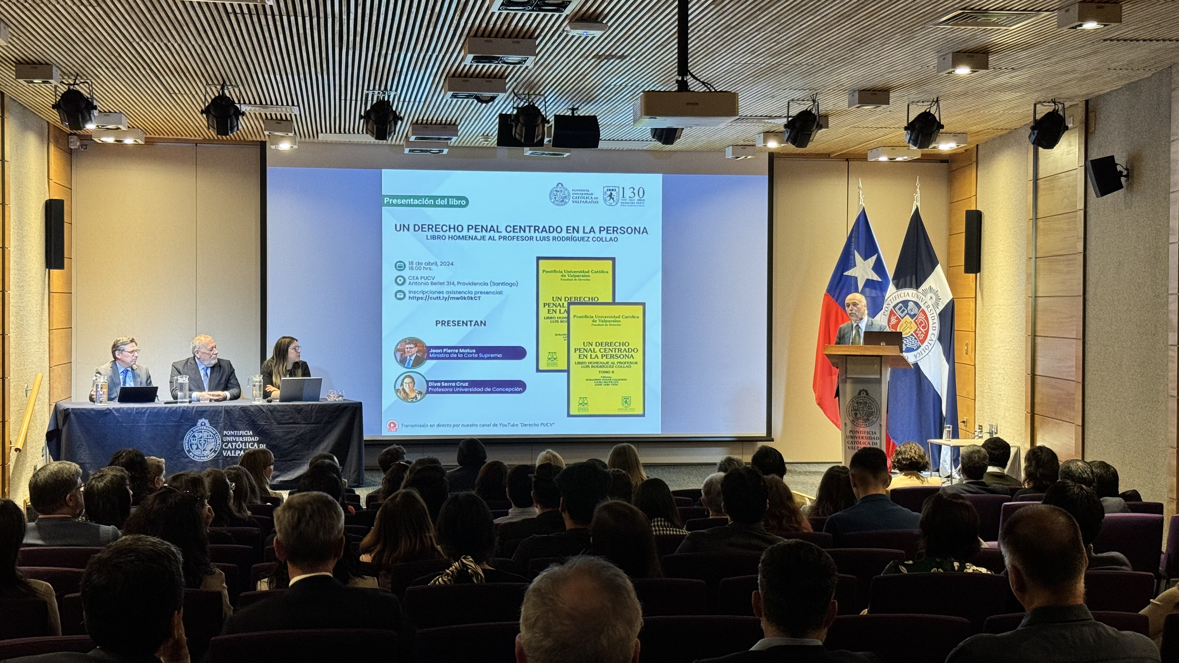 Un momento especial se vivió en el auditorio de PUCV Santiago la tarde del jueves 18 de abril. Académicos de la Escuela de Derecho de la Pontificia Universidad Católica de Valparaíso, encabezados por el Dr. Guillermo Oliver, Dr. Jaime Vera y la Dra. Laura Mayer, quienes realizaron el lanzamiento oficial del libro “Un Derecho Penal Centrado en la Persona - Libro Homenaje al Profesor Luis Rodríguez Collao”.