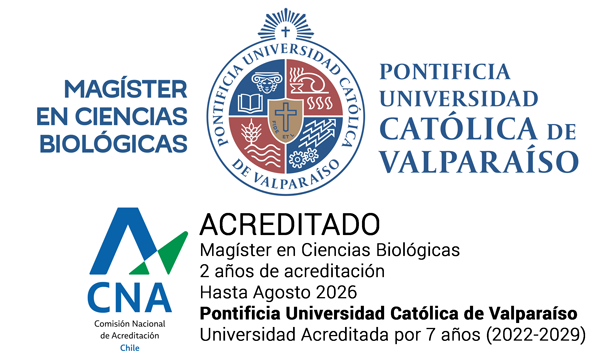 El Magíster en Ciencias Biológicas es un Programa académico perteneciente a la Facultad de Ciencias, de la Pontificia Universidad Católica de Valparaíso, acreditado por 2 años, hasta AGOSTO de 2026. Comisión Nacional de Acreditación CNA - Chile