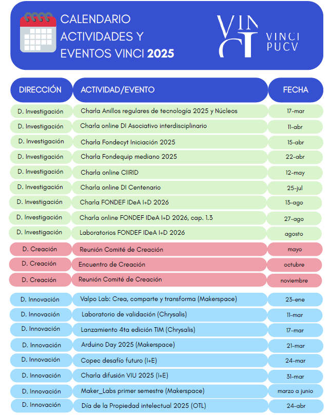 Usted está en: Portada | Vicerrectoría de Investigación, Creación e Innovación Calendario Actividades y eventos VINCI 2025 Descargas Calendario Actividades y eventos 2025 Twittear subir volver