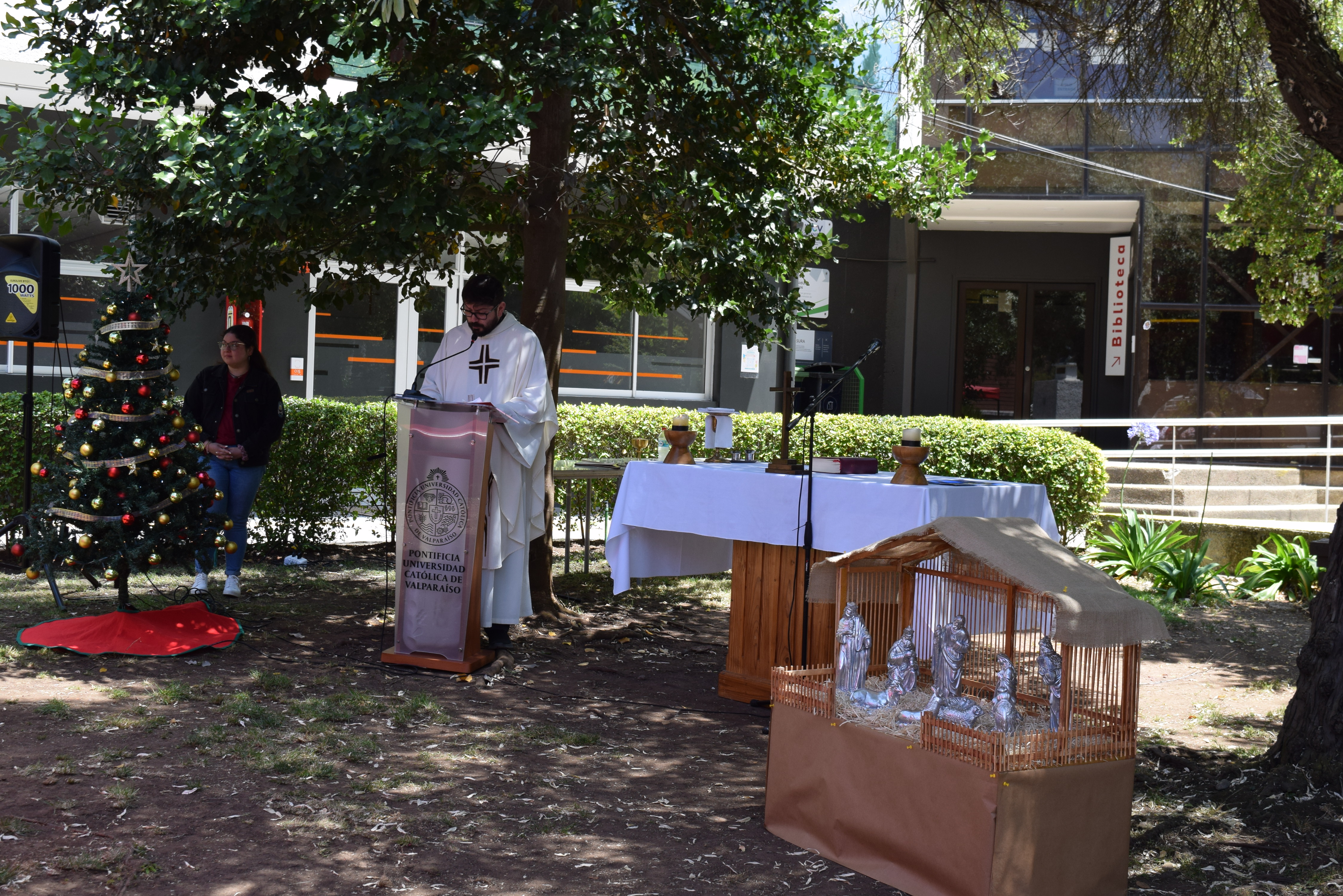 La actividad comenzó con una misa de Navidad a cargo de la Pastoral PUCV, la cual estuvo dirigida por el Capellán General de la PUCV, José Pablo Valencia y la Pastoral de la PUCV. Además, esta misa estuvo acompañada por grupo folclórico parroquial Asunción de María, quienes interpretaron diversos cantos religiosos.