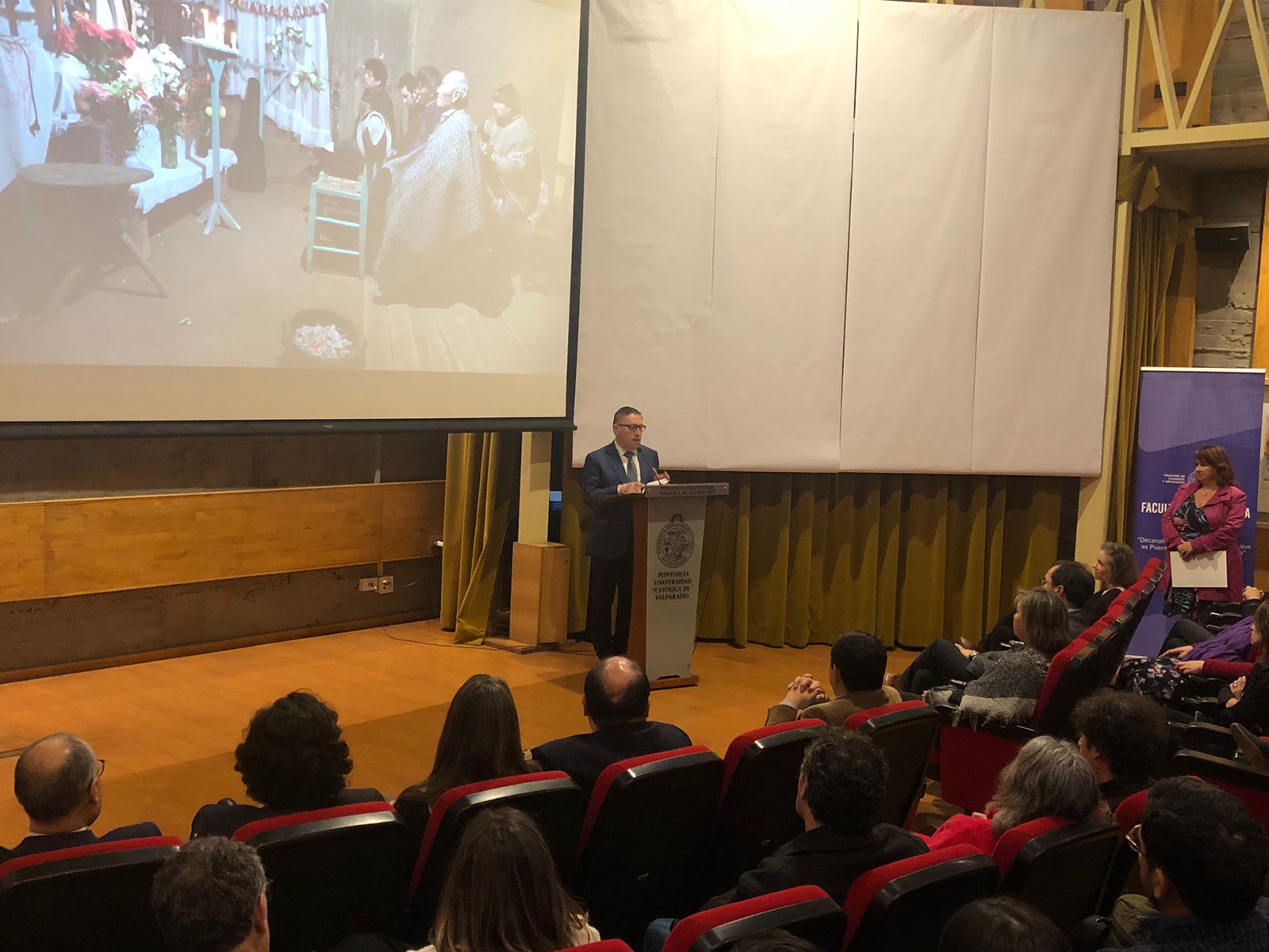 La ceremonia se realizó en la Cineteca de la PUCV y contó con la presencia de rector Nelson Vásquez; el decano de la Facultad de Filosofía y Educación, José Miguel Garrido; el decano de la Facultad de Arquitectura y Urbanismo, Rodrigo Saavedra; y la directora del proyecto, Virginia Iommi y diversos académicos y académicas de la Casa de Estudio.
