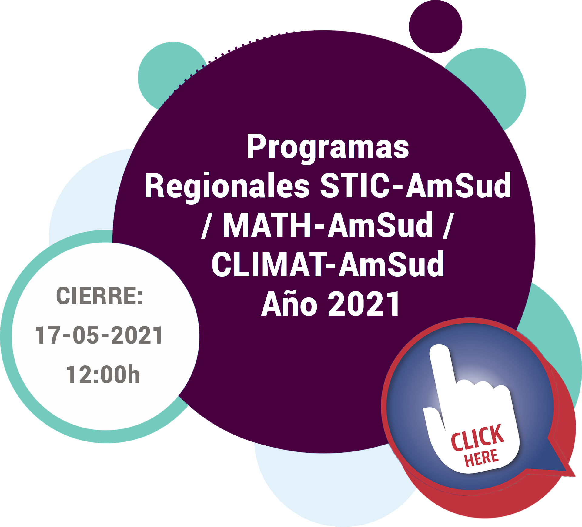 Usted está en: Portada | VINCI Cierre ANID Programas Regionales STIC-AmSud / MATH-AmSud / CLIMAT-AmSud Año 2021 Twittear subir volver