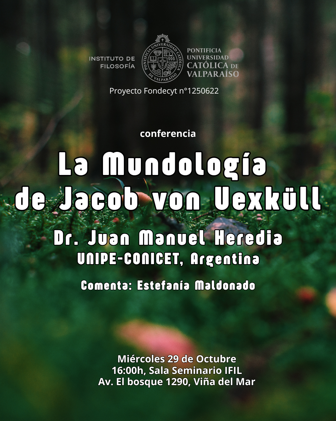 El miércoles 29 de octubre a las 18:00h, en la Sala Seminario del Instituto de Filosofía, tendrá lugar la conferencia titulada La mundología de Jacob von Uexküll, a cargo del prof. Dr. Juan Manuel Heredia. Licenciado y Doctor en Filosofía por la Universidad de Buenos Aires (UBA). Investigador Adjunto del Consejo Nacional de Investigaciones Científicas y Técnicas (CONICET). es Profesor Adjunto de la materia Filosofía contemporánea del Departamento de Filosofía (UBA) y Profesor Adjunto del Departamento de Humanidades y Artes de la Universidad Pedagógica Nacional (UNIPE). Su investigación se focaliza en problemáticas de historia intelectual, filosofía contemporánea y filosofía de la técnica, sobre las cuales ha hecho aportes en diversas publicaciones. Autor del libro Mundología: Jacob von Uexküll, aventuras inactuales de un personaje conceptual (Cactus, 2022). La actividad será comentada por Estefanía Maldonado, estudiante de nuestro Instituto de Filosofía.