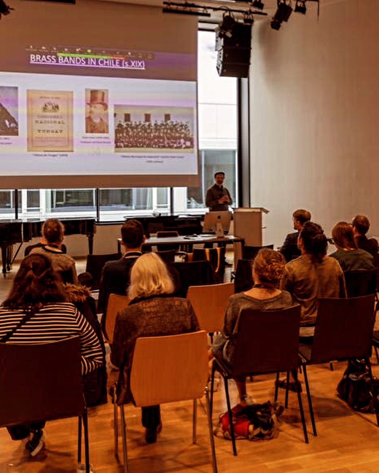 El profesor Ricardo Álvarez, perteneciente al Instituto de Música de la PUCV y Coordinador del Eje Formación del proyecto Conocimientos 2030, concluyó con éxito su estadía por Europa. Durante este viaje, no solo tuvo la oportunidad de compartir experiencias y conocimientos, sino que también presentó los resultados de su actual investigación sobre el desarrollo que han tenido las bandas de bronce en los movimientos sociales de Santiago y Valparaíso durante el siglo XXI.