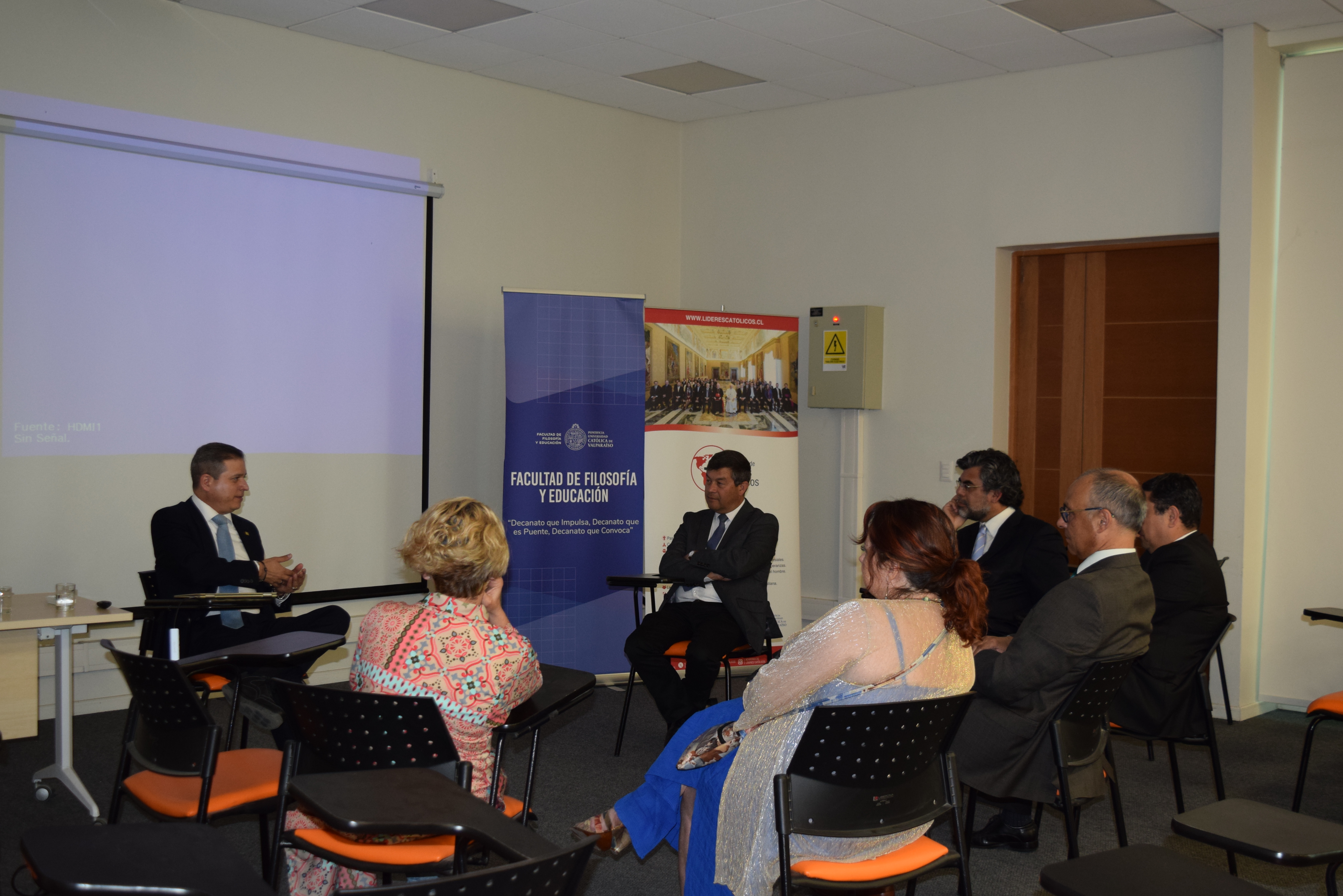 El miércoles 8 de noviembre, la PUCV realizó un conversatorio sobre el futuro de la educación católica y los desafíos del Pacto Educativo Global. El evento se realizó en el Salón Quinto Centenario de Casa Central y fue organizado por la Dirección General de Asuntos Internacionales, la Asociación de Líderes Católicos y la Facultad Eclesiástica de Teología.