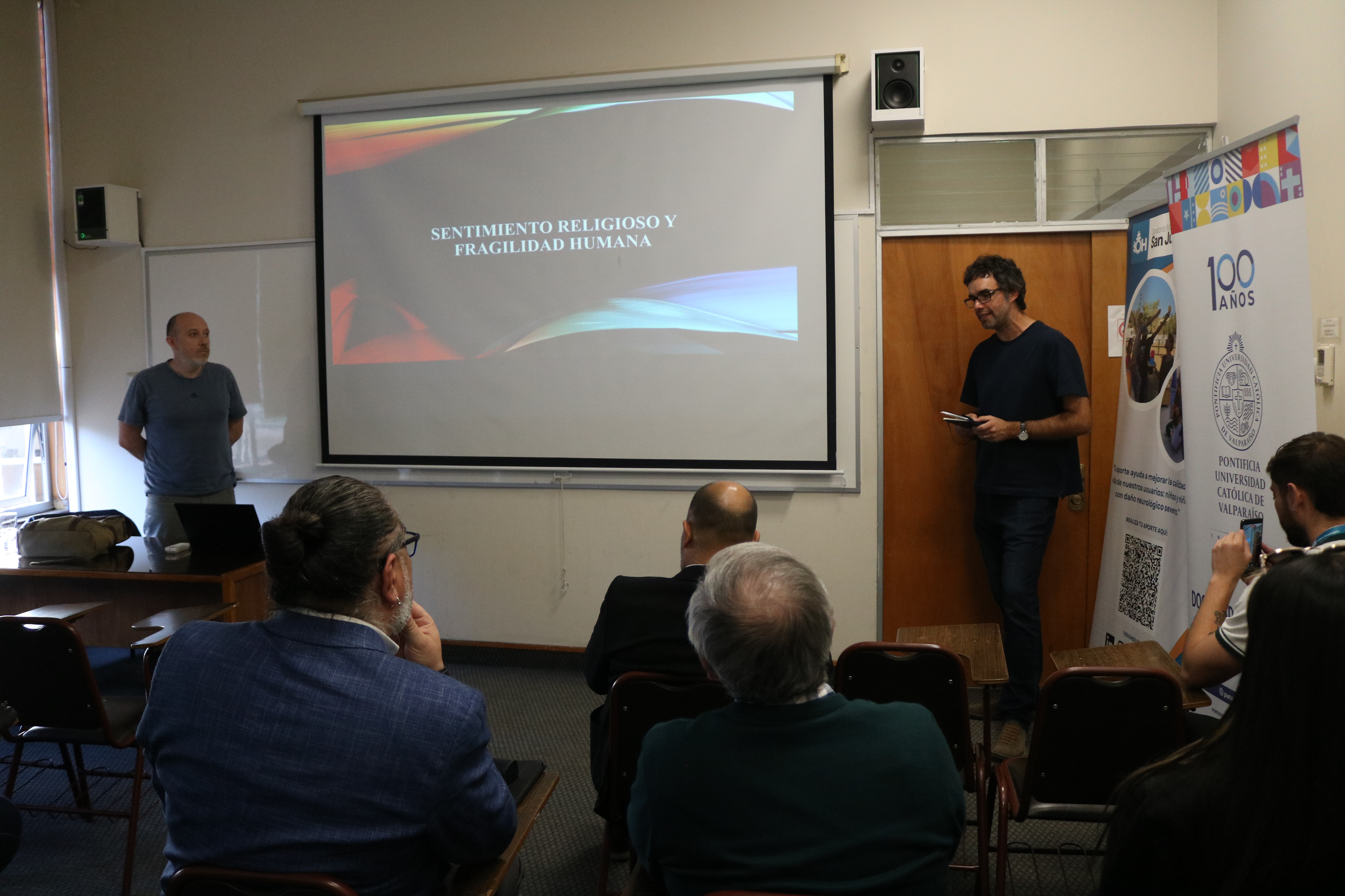 El encuentro se inició con la presentación “Sentimiento religioso y fragilidad humana”, a cargo de Salas, quien propuso una reflexión interdisciplinaria que integró elementos de la teología, la filosofía, la psicología y la historia de las religiones.