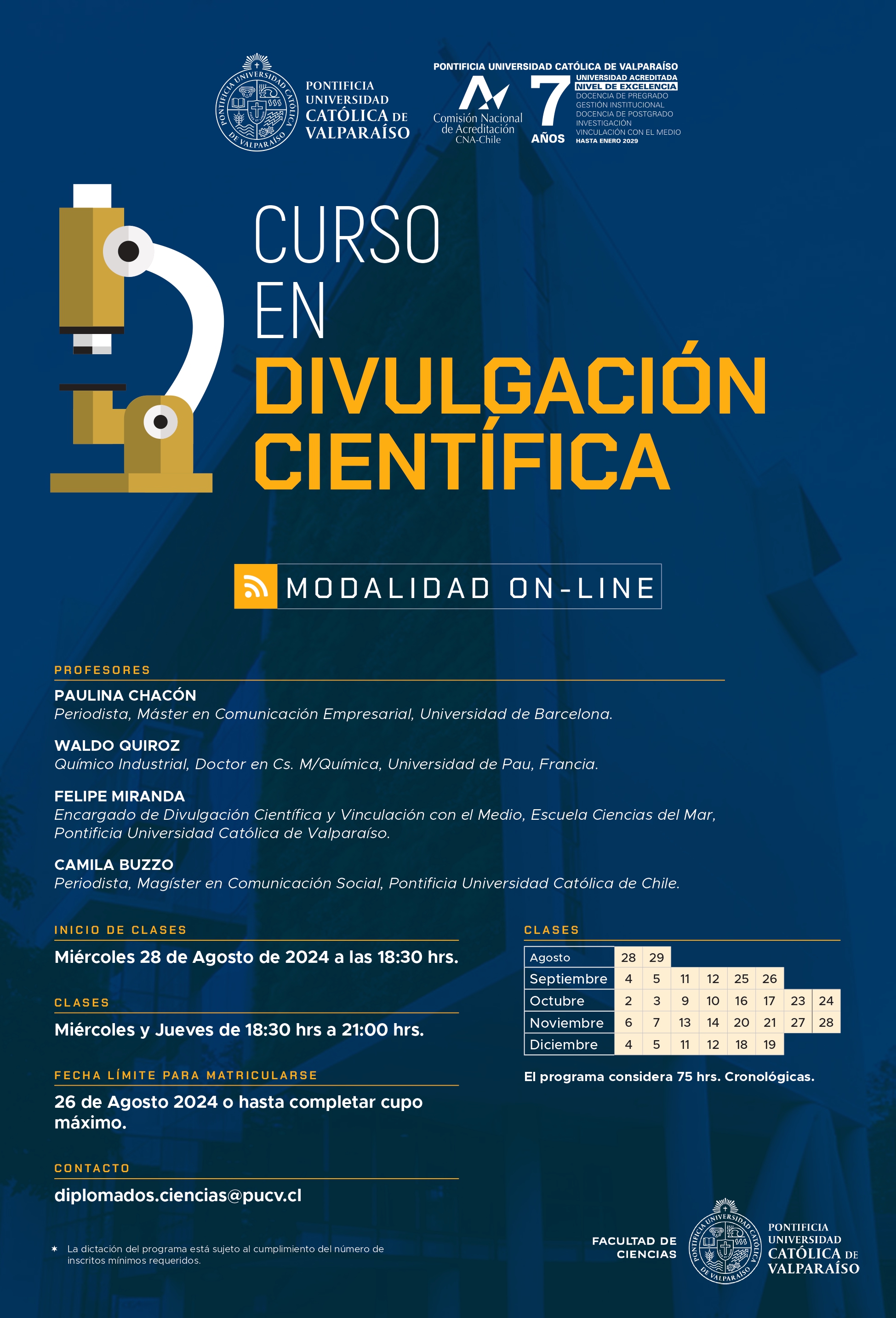 Enviar al correo diplomados.ciencias@pucv.cl ficha de inscripción junto a comprobante de pago.