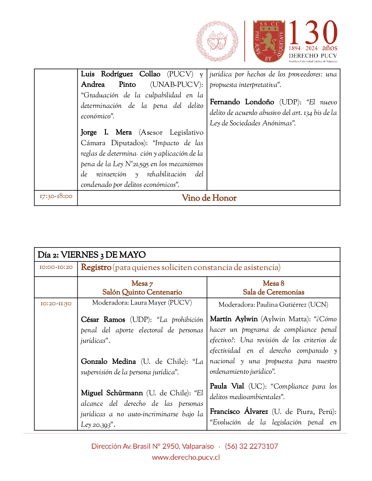Dicha actividad tendrá lugar en la ciudad de Valparaíso, los días 2 y 3 de mayo de 2024 y se realizará con ocasión del centésimo trigésimo aniversario del Curso de Leyes de los SSCC de Valparaíso, con el que se funda dicha Escuela de Derecho.
