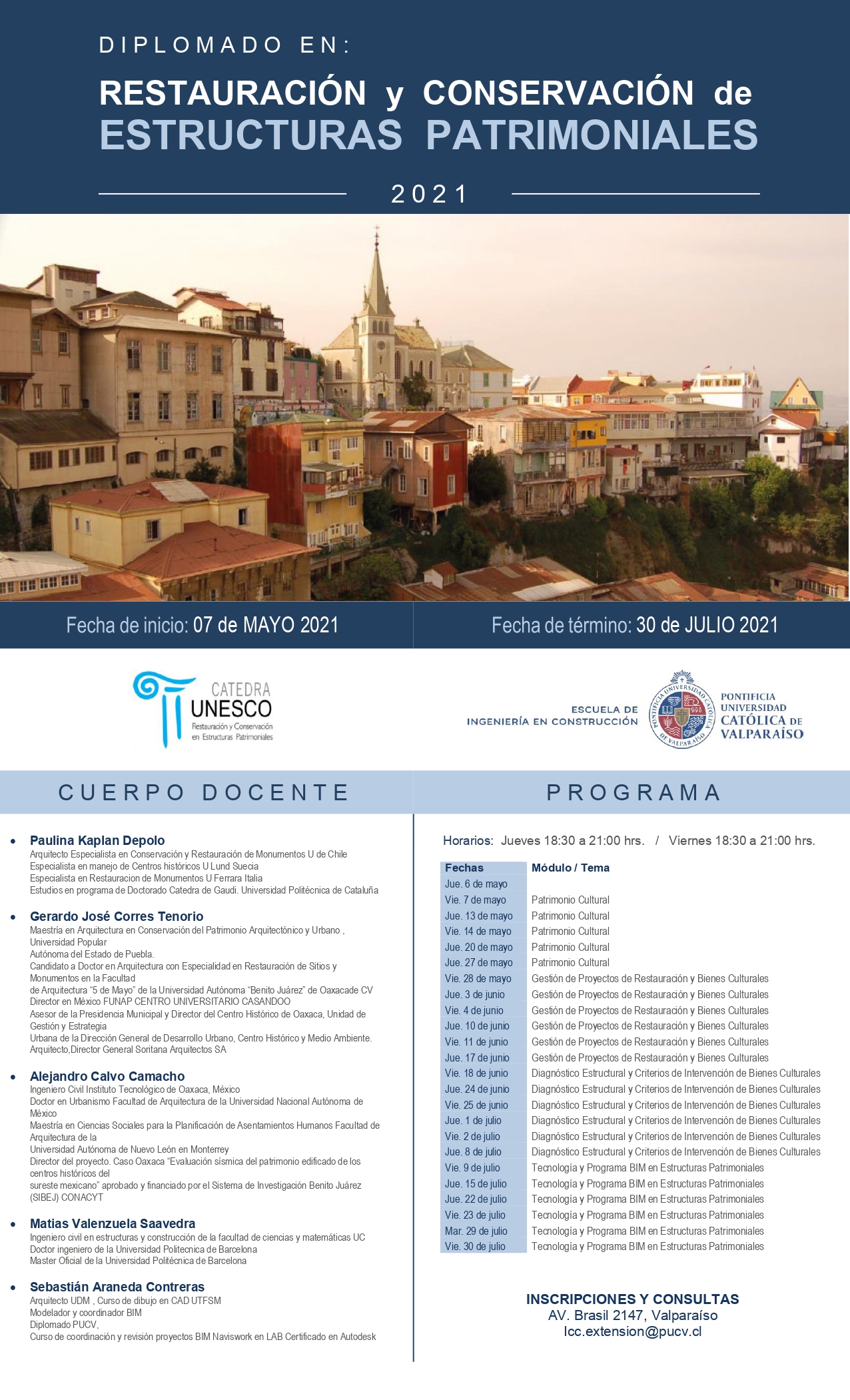 Usted está en: Portada | Escuela de Ingeniería en Construcción Diplomado Restauración y Conservación de Estructuras Patrimoniales ----------------------------------------- Fecha de Inicio; 07 de mayo de 2021 Valor del Curso : $630.000 ------------------------------------- afssssssssssssssssssss Twittear subir volver