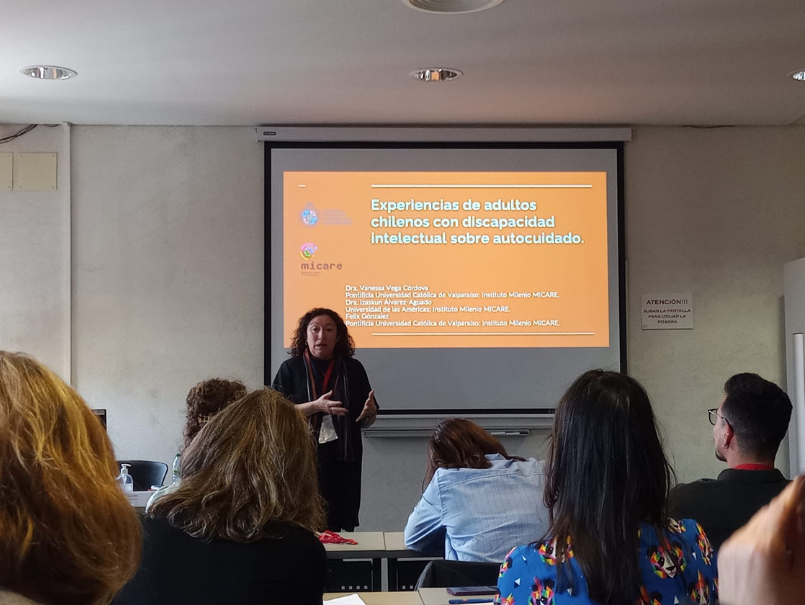 Los académicos representaron al Millennium Institute for Care Research (MICARE), un instituto de investigación científica enfocado en el cuidado de adultos mayores dependientes y personas con discapacidad intelectual. En este contexto, presentaron los simposios "Experiencias de adultos chilenos con discapacidad intelectual sobre autocuidado" y "Participación de personas con discapacidad intelectual en procesos de investigación inclusiva: principales desafíos".