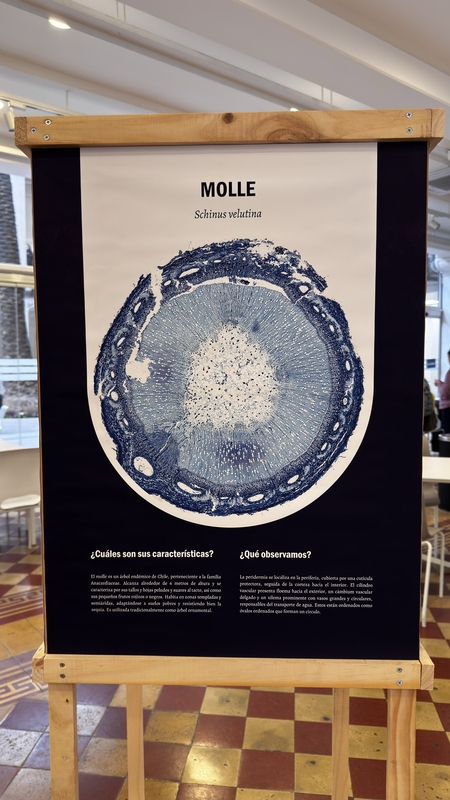 Entre todas las muestras exhibidas en la actividad, Reyes señala que el Molle (Schinus velutina) fue la que más le fascinó. Esto debido a que “la arquitectura de los tallos de las plantas sigue un diseño particular dependiendo de su historia evolutiva. En esta especie pudimos apreciar la armoniosa distribución del sistema circulatorio que caracteriza al grupo de las eudicotiledóneas.”