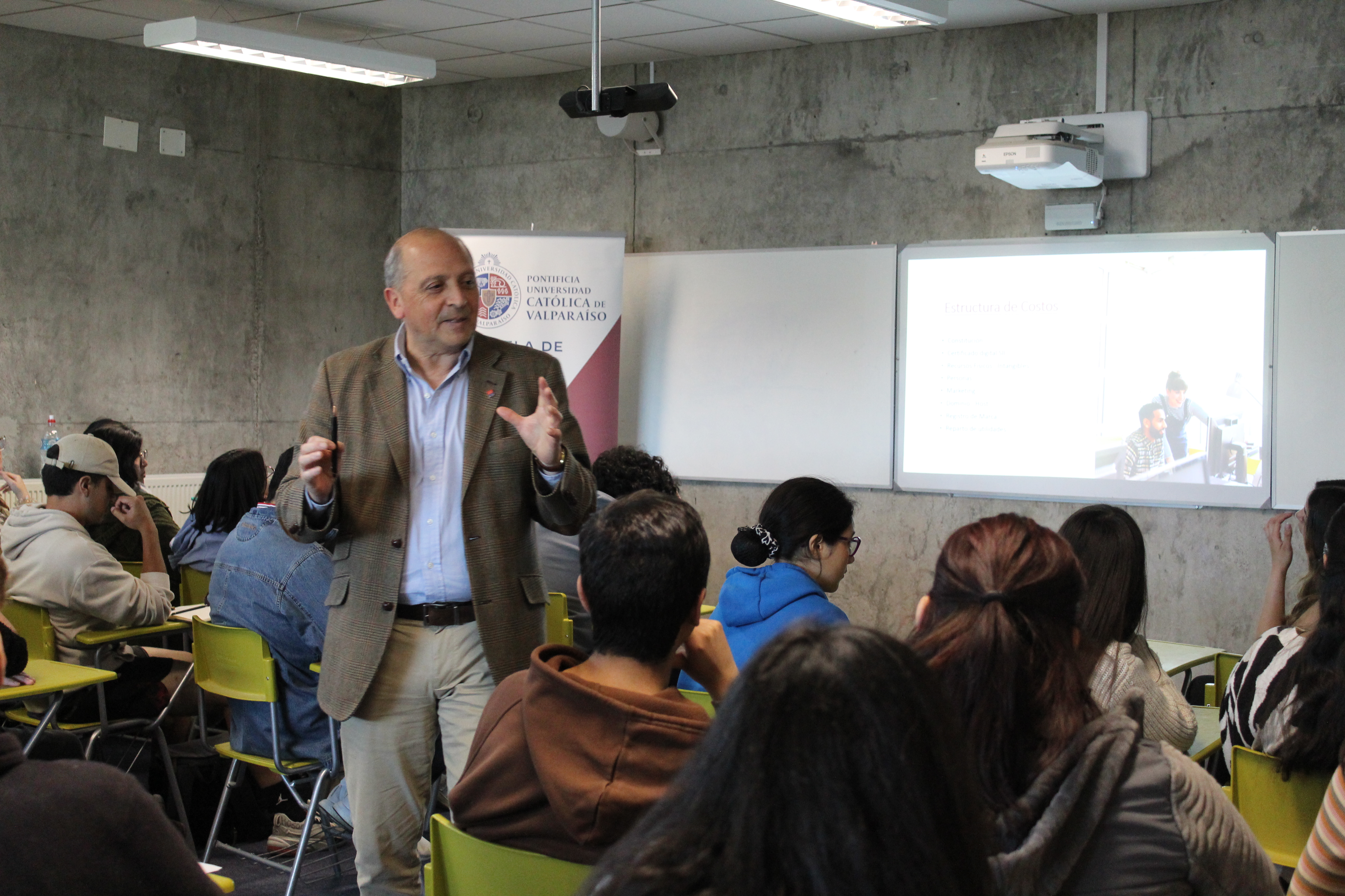 El curso de Tributación 4 y el Director Roberto Yany, estuvieron presentes en la Escuela de Periodismo, específicamente en la asignatura de Emprendimiento y Proyectos, a cargo de la Profesora Katherine Quezada, en donde existen 15 equipos que deben realizar un proyecto final para aprobar los contenidos.