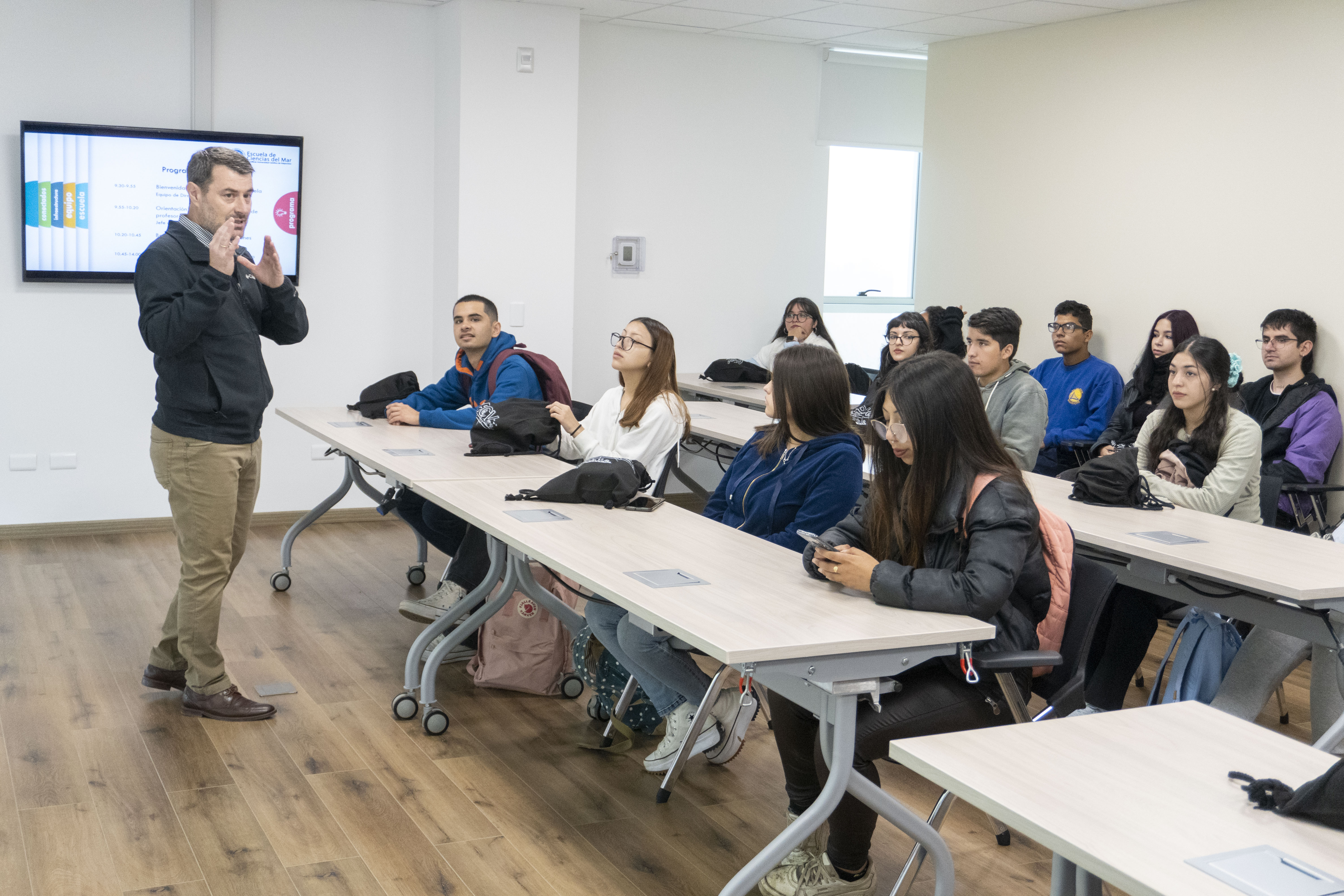 Posterior al primer discurso, a los estudiantes se les presentó a parte del equipo docente y de funcionarios de la Escuela. También realizaron un recorrido por las instalaciones del Campus Curauma, a cargo de alumnas de Oceanografía.