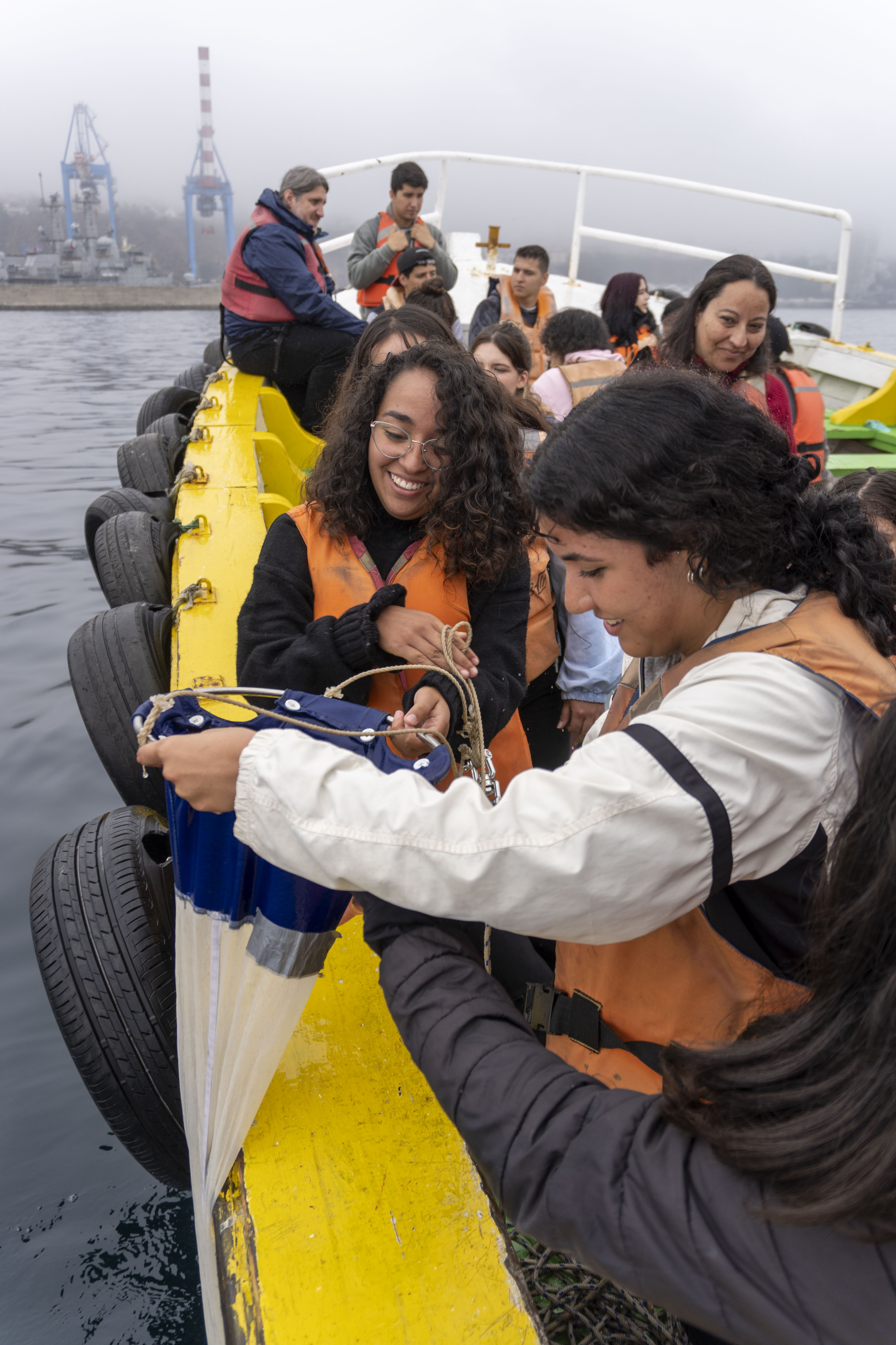 Después de las actividades realizadas en el campus, los alumnos y alumnas fueron llevados a una salida a terreno en la Bahía de Valparaíso, a cargo de los profesores Marcela Cornejo y Juan Höfer.