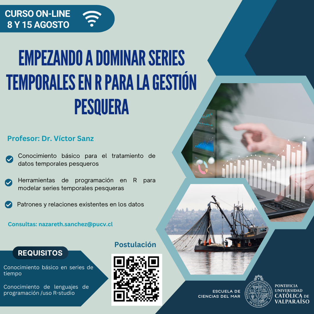 En tanto a los cursos, estos se realizarán durante todo el mes de agosto y se denominan de la siguiente manera: el primero, titulado “Construyendo modelos de simulación en R para el manejo pesquero”; el segundo, titulado “Manejo de pesquerías y estrategias de explotación sostenibles”; el tercero, titulado “Curso avanzado Modelamiento Predictivo aplicado a la Acuicultura”; y finalmente, el titulado “Empezando a dominar series temporales en R para la gestión pesquera” (por anunciarse).