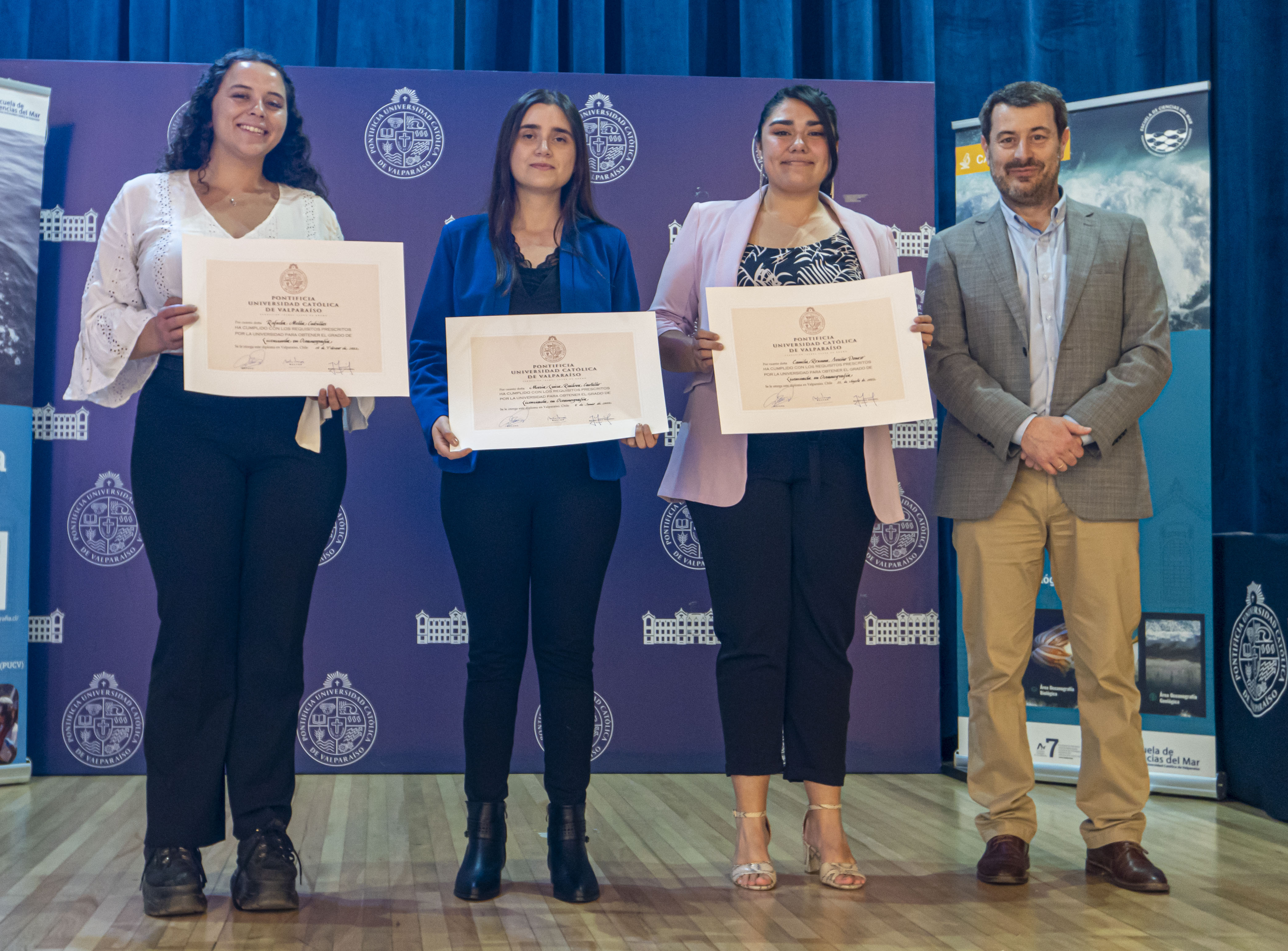 Quienes recibieron sus certificados recordaron con mucha emoción sus años como estudiantes y el proceso que significó finalizar sus respectivas etapas. Rossana Fredes, quien recibió su título de Oceanógrafa, se refirió a esto en su discurso “Sientanse orgullosos y permitámonos felicitarnos a nosotros mismos, porque hoy finalizamos nuestros estudios en la Escuela de Ciencias del Mar luego de mucho esfuerzo y perseverancia”