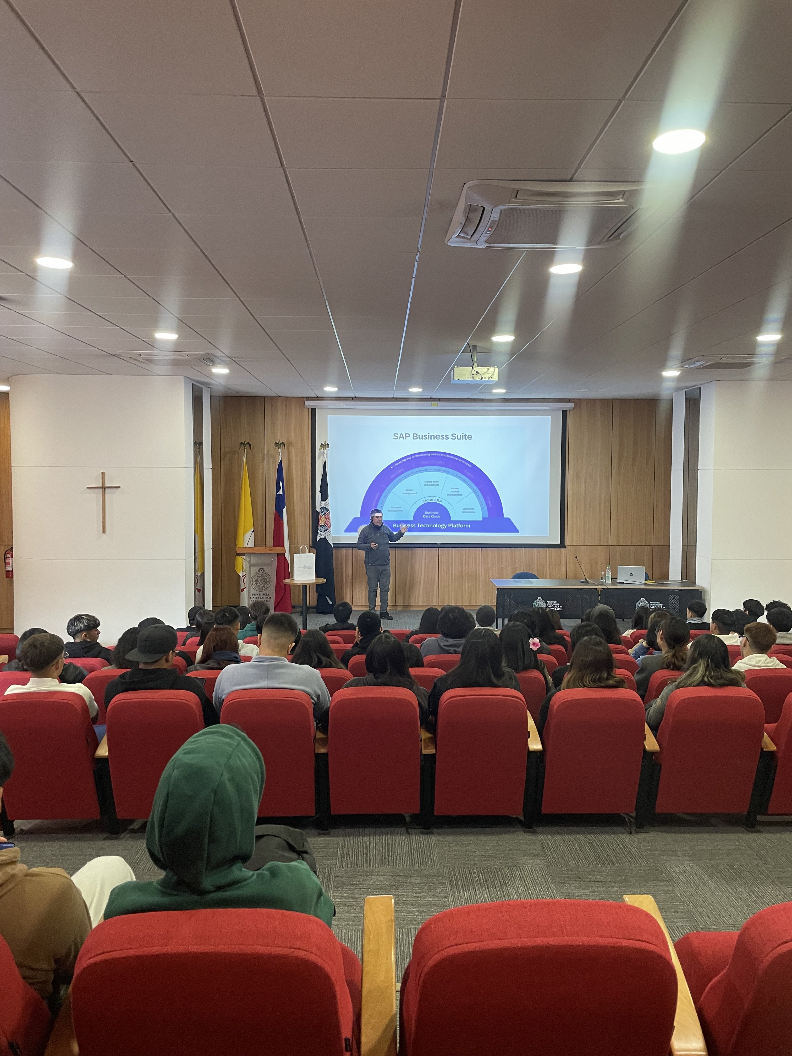 La Escuela de Comercio de la Pontificia Universidad Católica de Valparaíso realizó una charla sobre SAP ERP, a cargo de Salvador Henríquez, consultor SAP, dirigida a estudiantes de la carrera de Contador(a) Auditor(a).