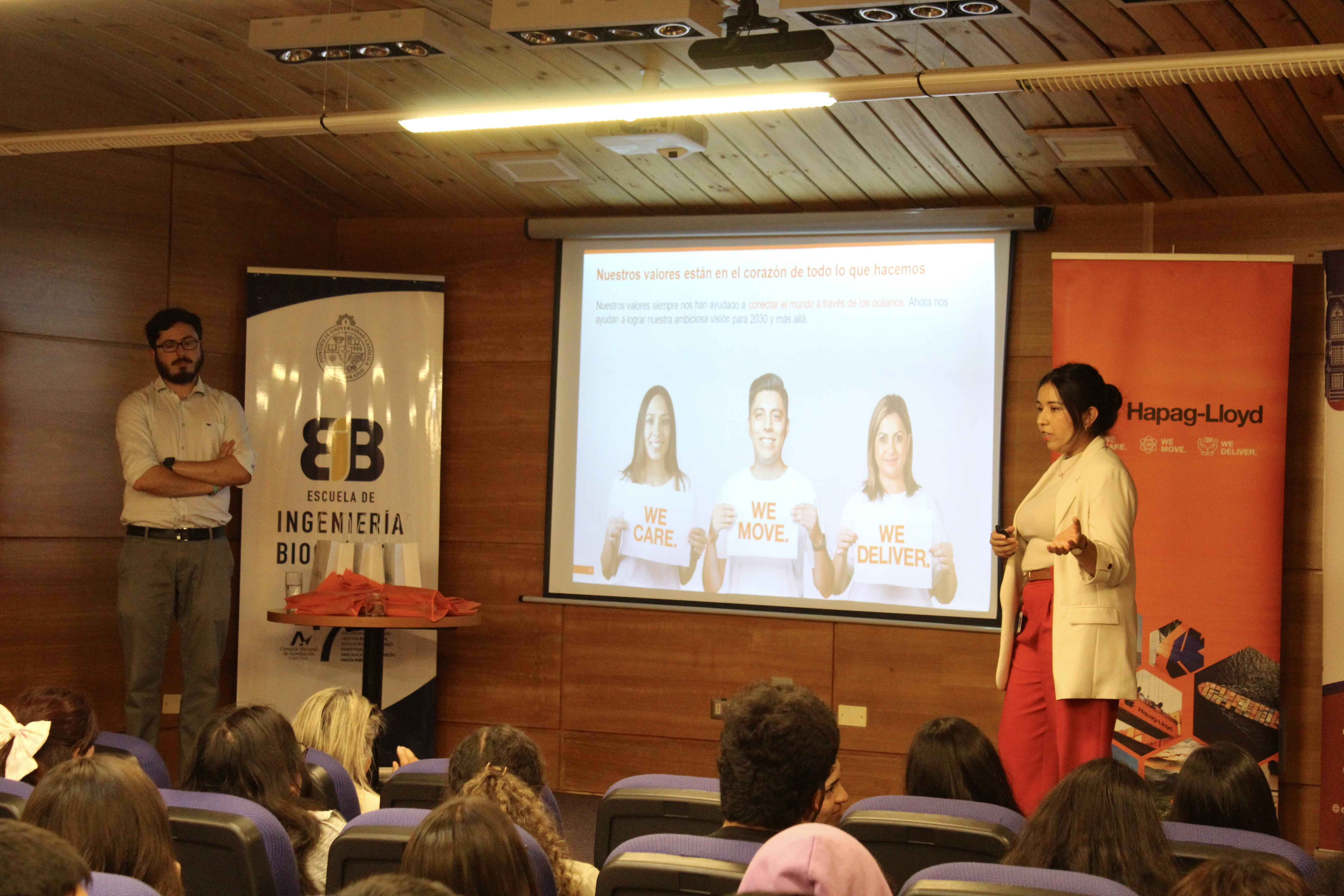 Durante el encuentro, los expositores presentaron aspectos clave que definen a esta naviera, incluyendo sus valores fundamentales, su modelo de trabajo y su firme compromiso con las nuevas generaciones. Los representantes de la empresa enfatizaron la relevancia de la industria naviera para el desarrollo económico del país, destacando su papel en la globalización y el comercio internacional. Esta dedicación y visión hacia el futuro constituyen la identidad de Hapag-Lloyd, que se esfuerza por innovar y adaptarse a los retos del mercado.