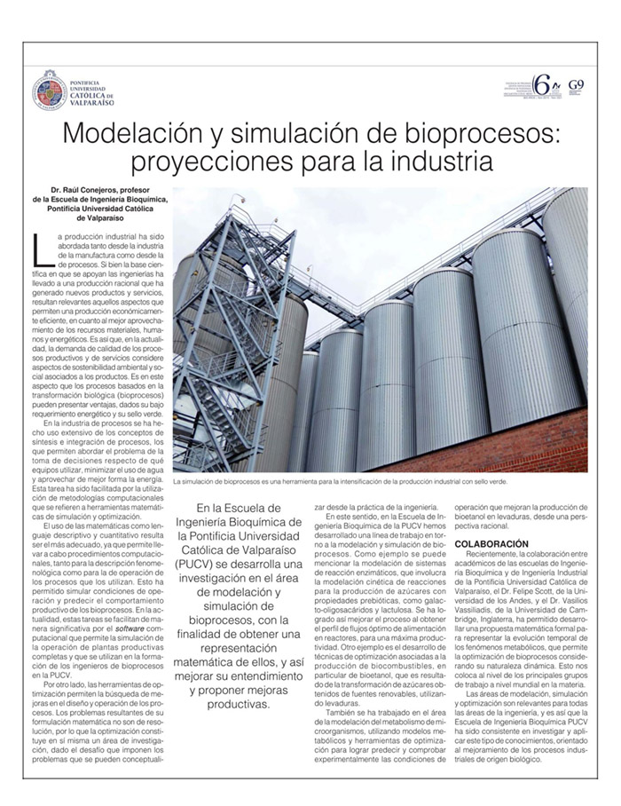 En la Escuela de Ingeniería Bioquímica de la Pontificia Universidad Católica de Valparaíso (PUCV) se desarrolla investigación en el área de modelación y simulación de bioprocesos, con la finalidad de obtener una representación matemática de ellos, y así mejorar su entendimiento y proponer mejoras productivas.
