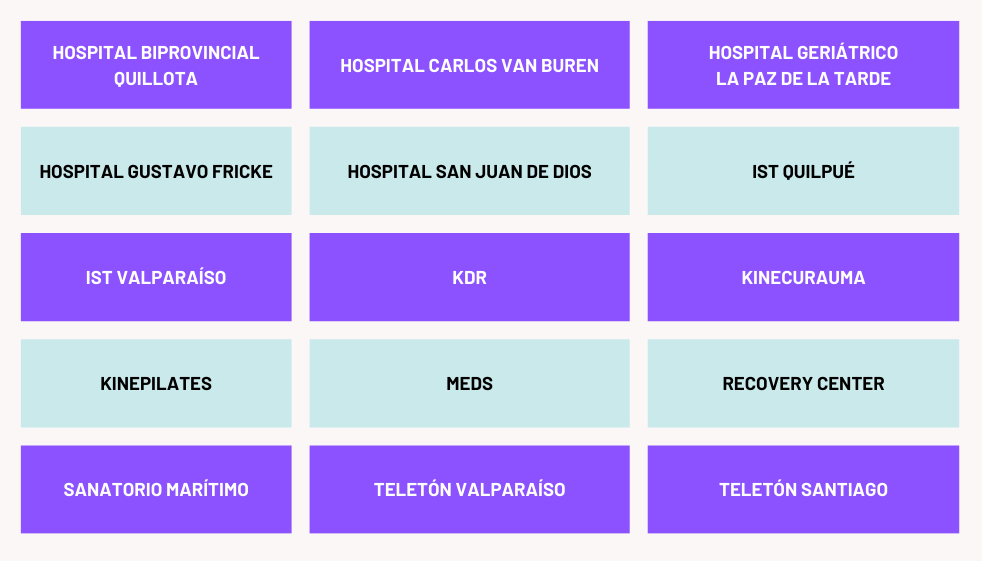 La Escuela de Kinesiología destaca por contar con 3 Centros Clínicos propios que permiten la realización de actividades asistenciales – docentes en diversas áreas de desempeño. Estas actividades incluyen la Práctica Profesional para los estudiantes de 5° año, así como también actividades prácticas de diversas asignaturas durante el transcurso de la carrera.