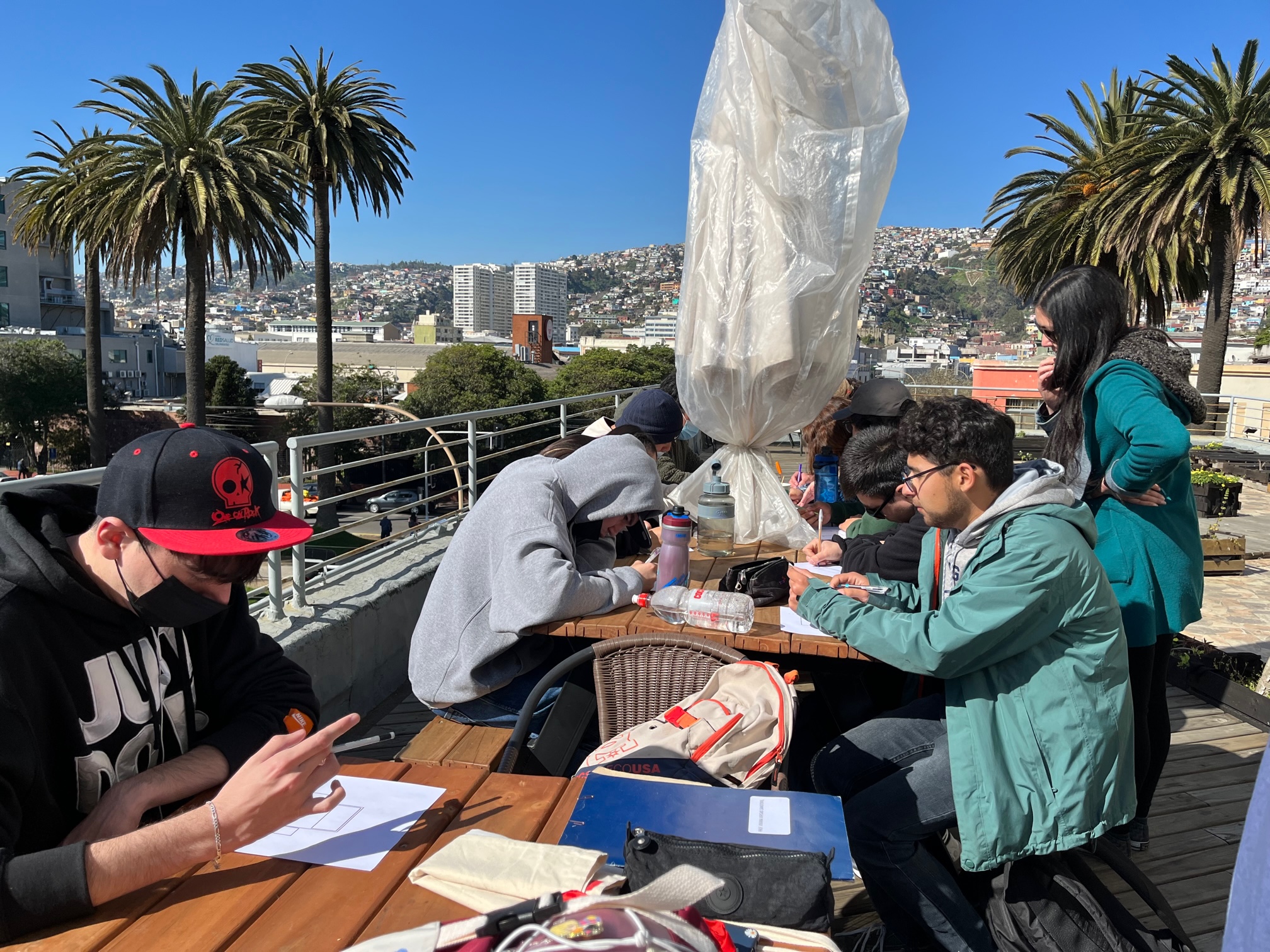 Desde la terraza del Instituto de Geografía, con la asistencia de los profesores Viviana Vargas, Rudy Allesch y los ayudantes Nicole Retamal y Ernesto Muranda, la finalidad del taller fue preparar a los presentes para su próxima salida a terreno, la cual será parte de la asignatura Sistemas Geográficos Físicos, y que consistirá en un viaje a Caldera y el norte de Chile, desde el 26 de septiembre hasta el 2 de octubre.