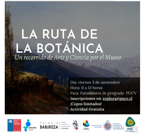 El pasado viernes 3 de noviembre, se realizó la primera jornada de la Ruta de la botánica, a cargo del profesor Cristian Atala, en compañía de estudiantes de pregrado del Instituto de Biología PUCV.