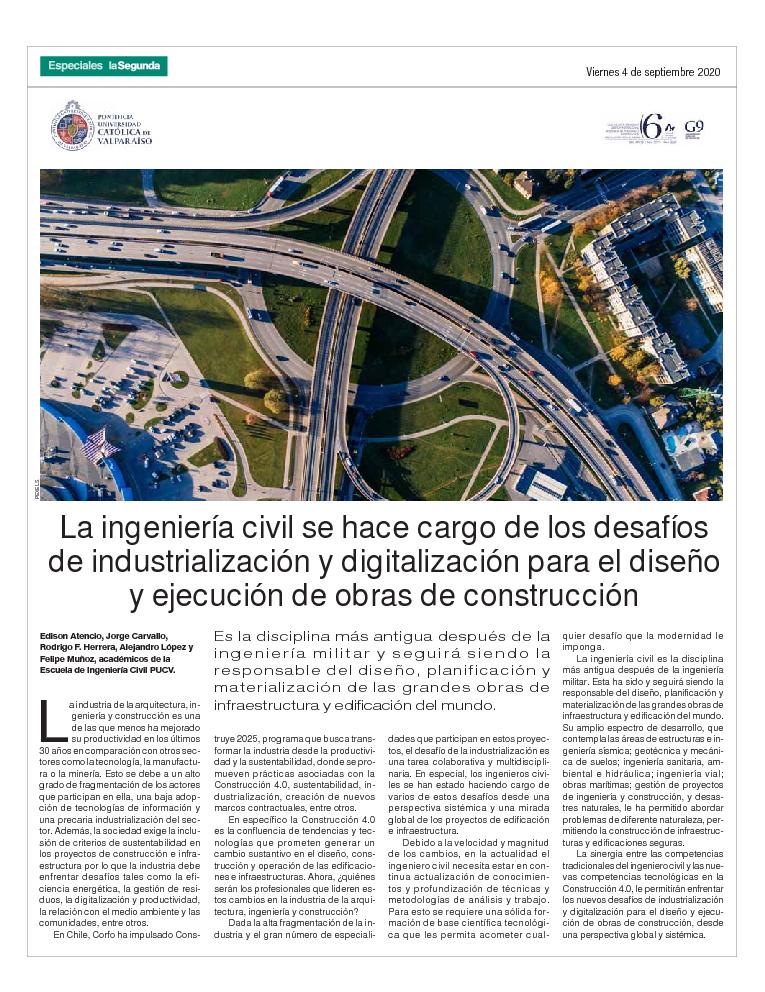 Publirreportaje "La ingeniería civil se hace cargo de los desafíos de industralización y digitalización para el diseño y ejecución de obras de construcción", de la escuela de Ingeniería Civil.