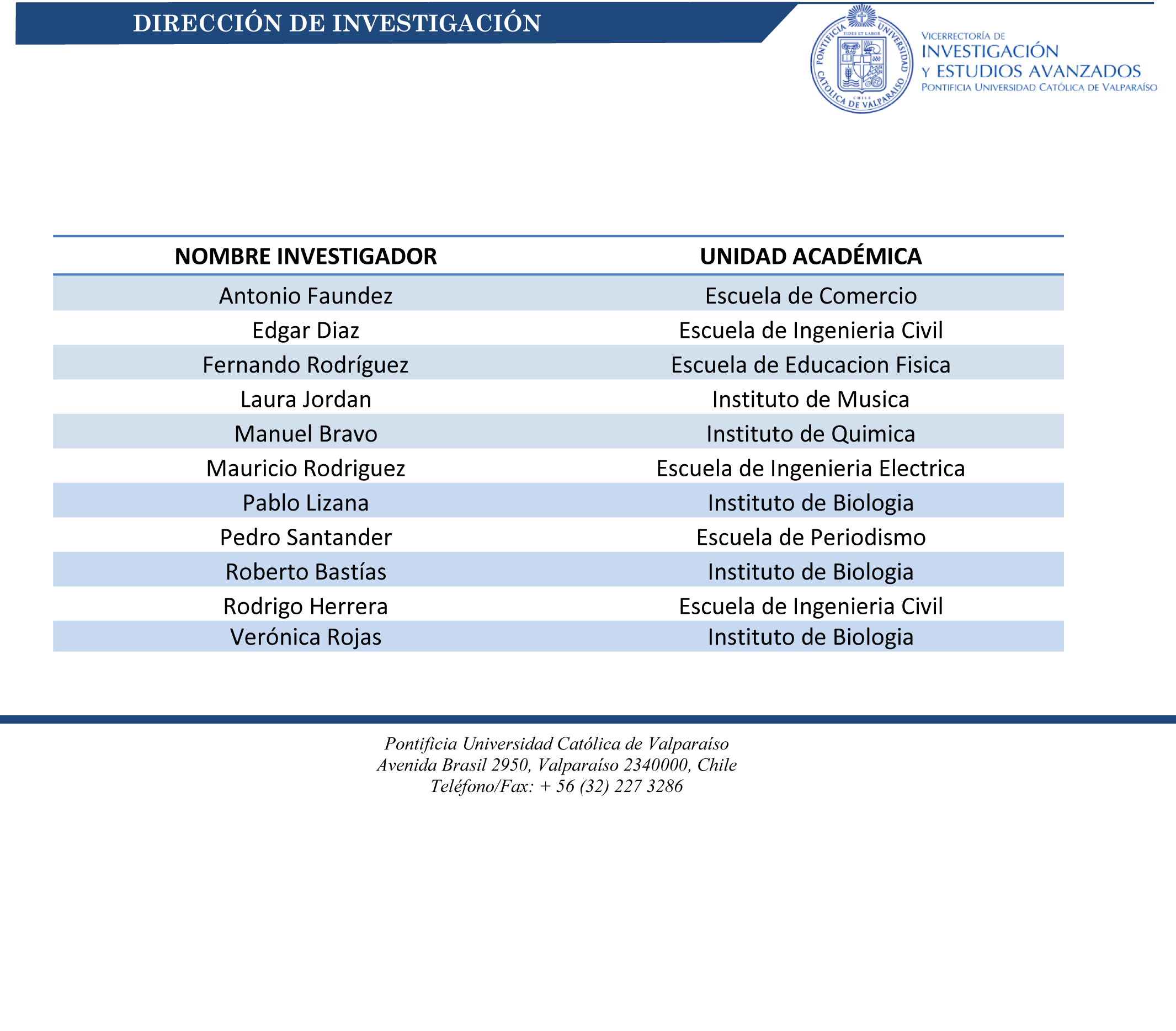 Usted está en: Portada | Vicerrectoría de Investigación, Creación e Innovación | Noticias FALLO CONCURSO DI: TRANSFERENCIA INVESTIGACIÓN AL PREGRADO 2021 Twittear subir volver