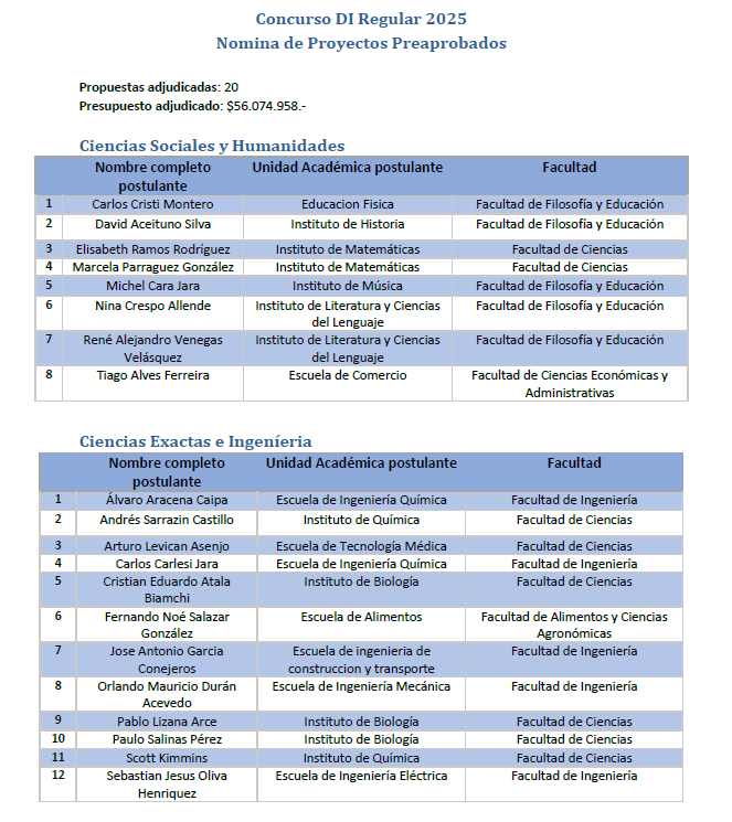 Usted está en: Portada | Vicerrectoría de Investigación, Creación e Innovación Fallo concusrso DI Regular 2025 Twittear subir volver