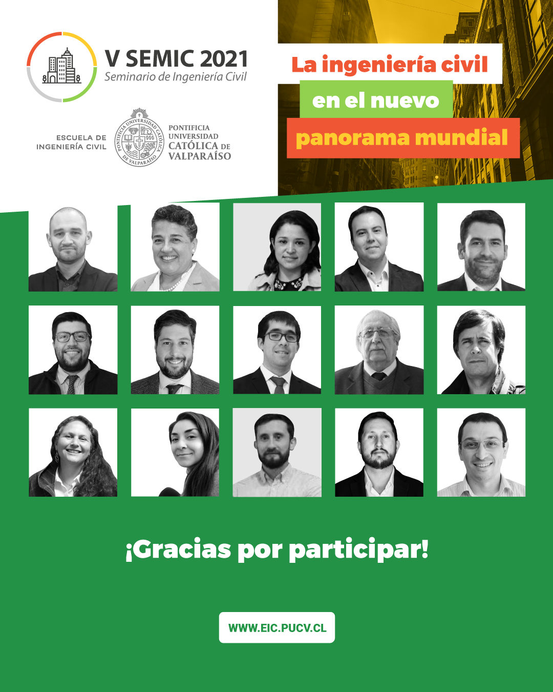 Durante los meses de octubre y noviembre se llevó a cabo la quinta versión del “SEMIC 2021: La Ingeniería Civil en el nuevo panorama mundial”. Este evento reunió a los más destacados especialistas en sus áreas para charlas sobre los desafíos venideros y cuáles son sus próximos proyectos.
