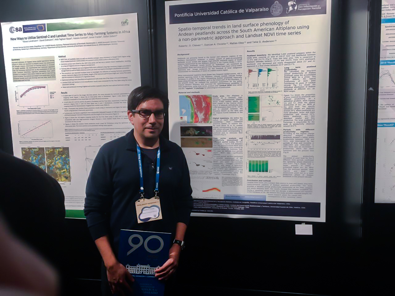 En la Sesión Monitoring Land Surface Phenology se presentó el poster titulado "Spatio-temporal trends in land surface phenology of Andean peatlands across the South American Altiplano using a non-parametric approach and Landsat NDVI time series".