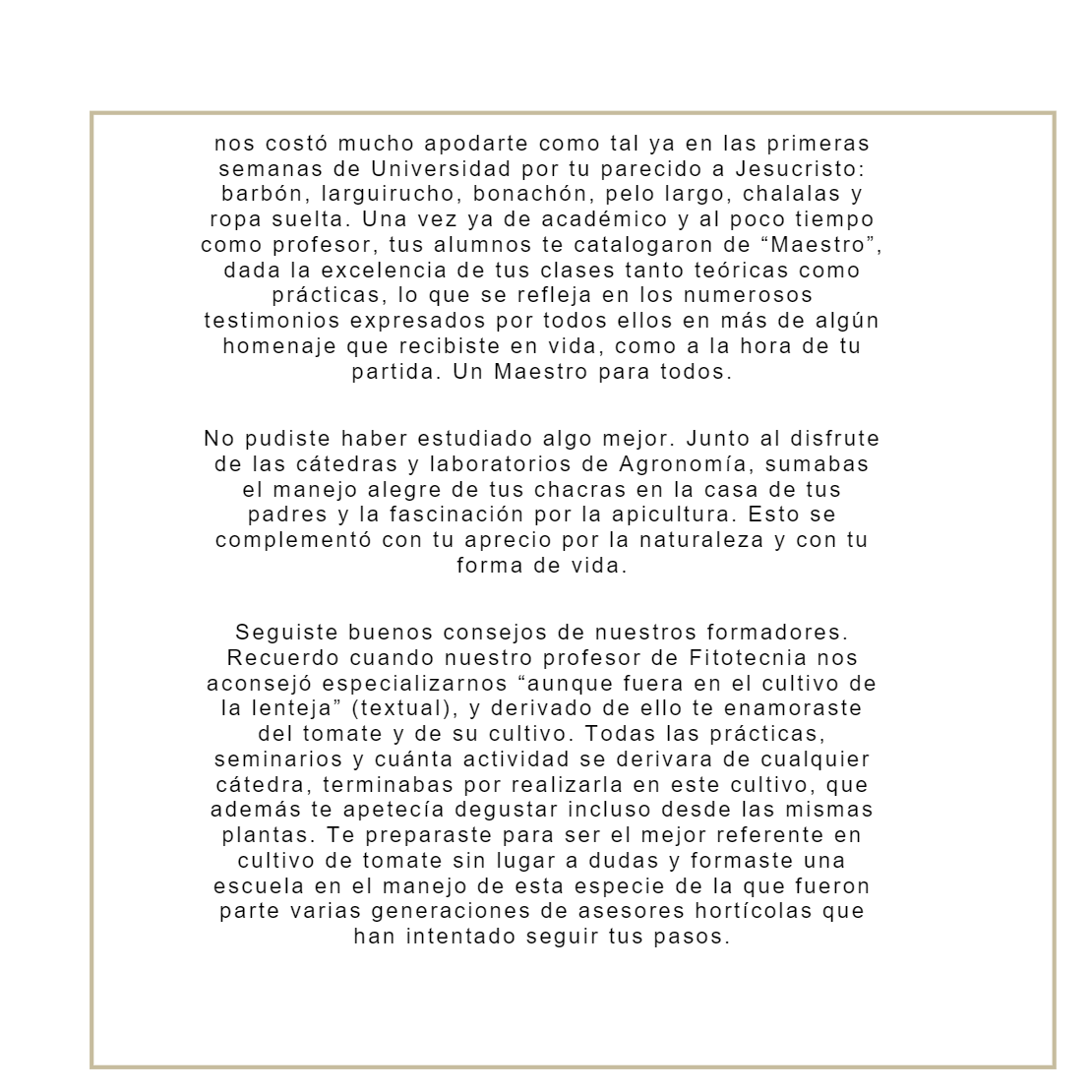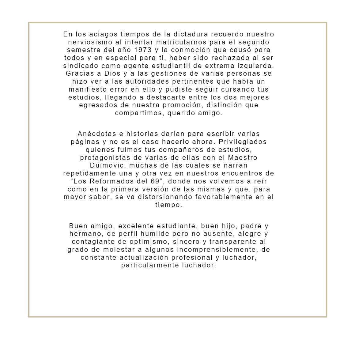 Finalmente, compartimos las sentidas palabras de dos integrantes de nuestra comunidad muy cercanos al profesor, Sra. Gabriela Verdugo y Sr. Víctor Navia, ex compañeros, colegas y amigos.