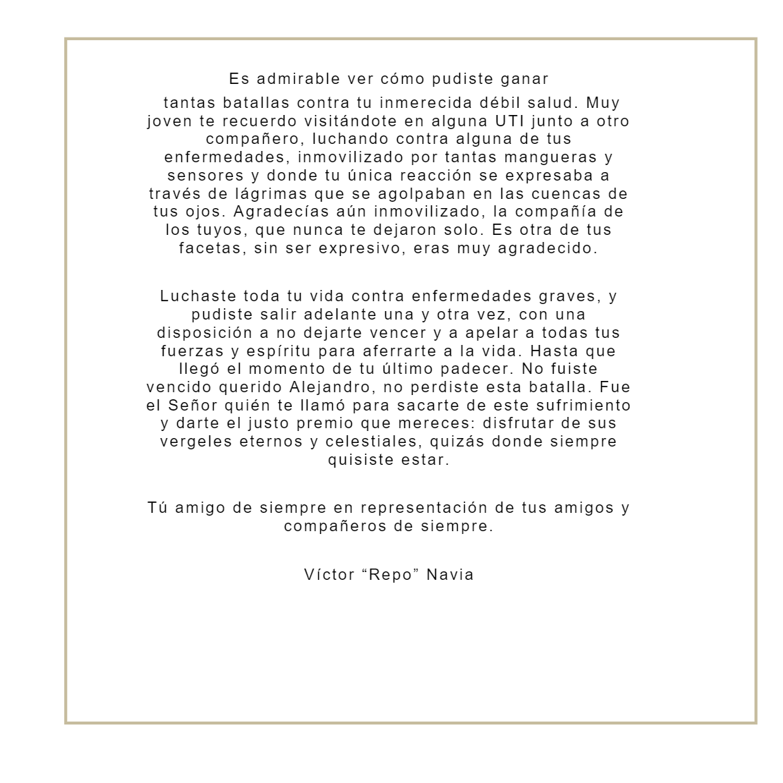 También continúa abierto un libro de condolencia virtual donde pueden expresar sus sinceras muestras de cariño y respeto al que pueden ingresar haciendo click aquí.